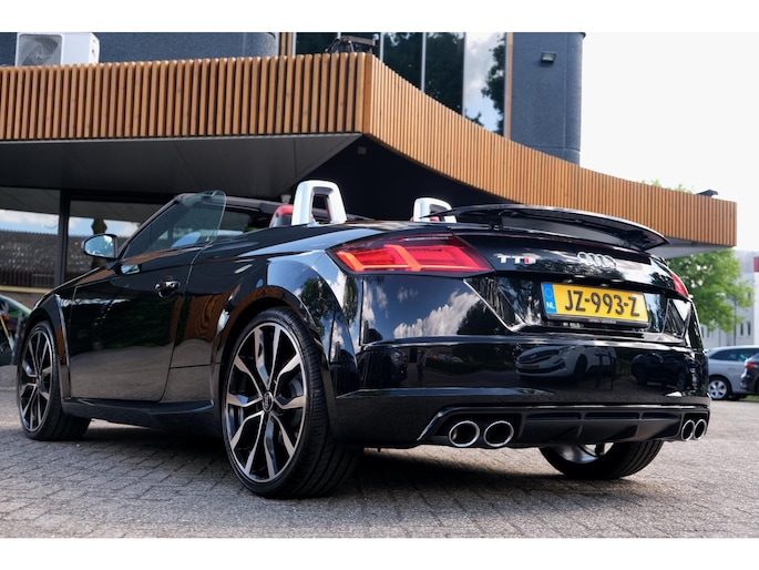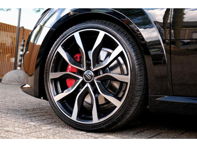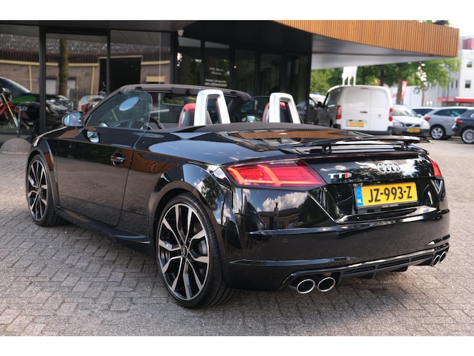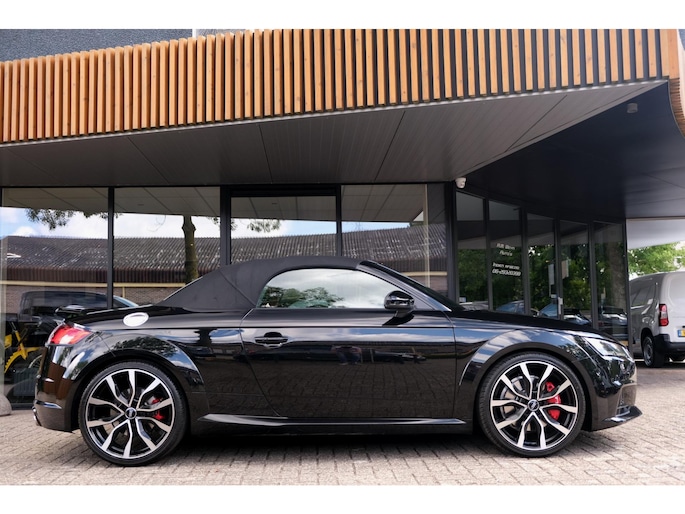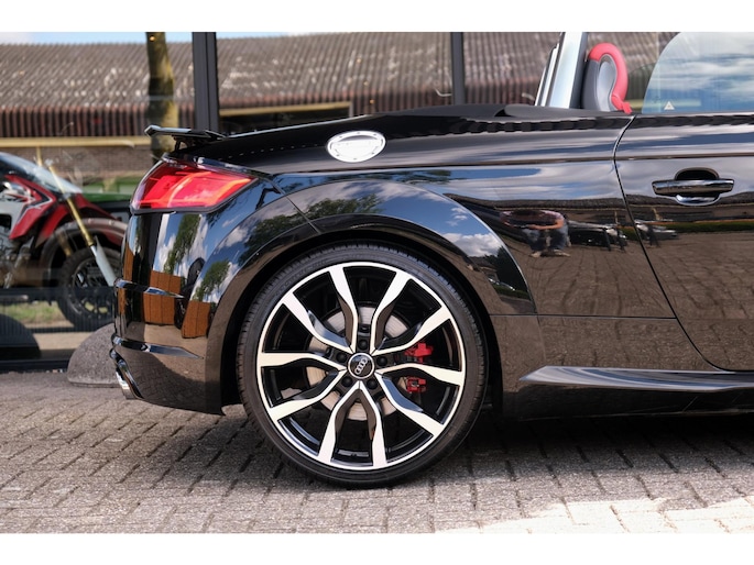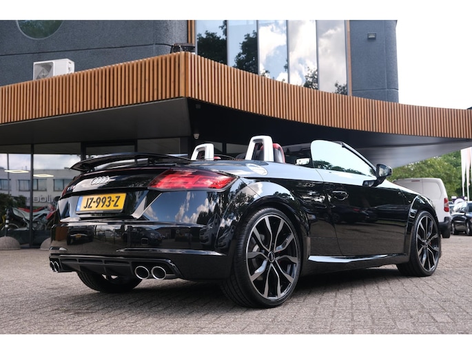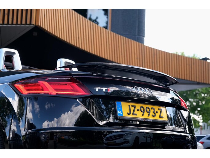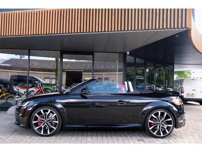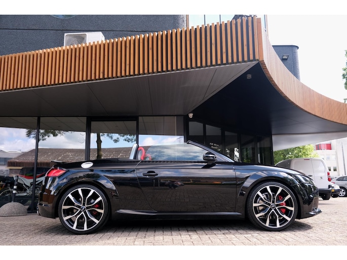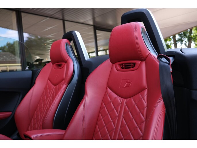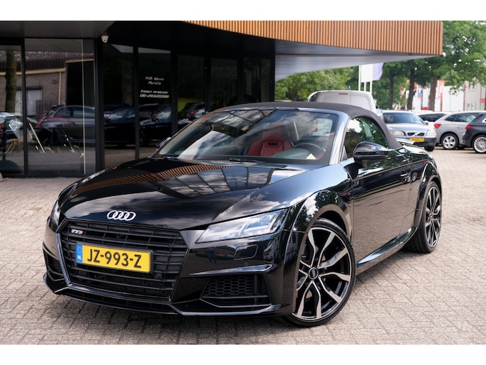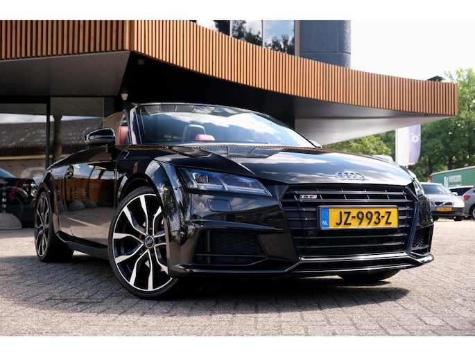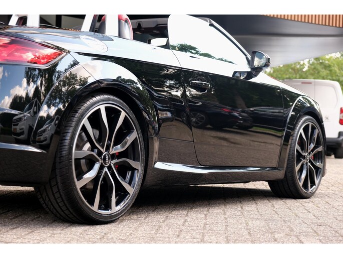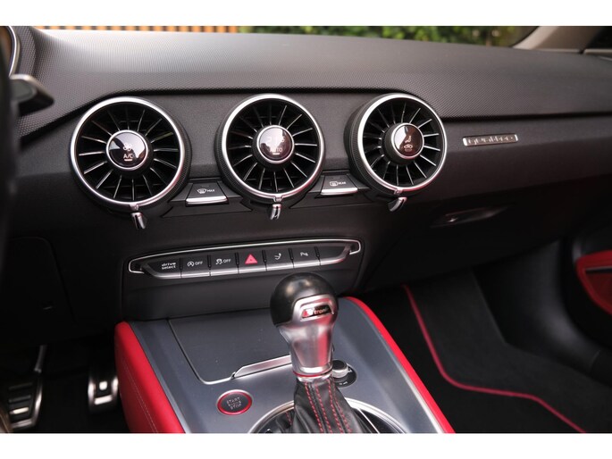 Nette, perfect onderhouden en rijk uitgeruste Audi TT Roadster 2.0 TFSI TTS quattro Pro Line + uit 2016. Deze 310pk sterke cabrio is o.a. voorzien van: softtop, nekverwarming, stoelverwarming, DAB, keyless, Bang & Olufsen Sound System, lane assist, elektrisch verstelbare voorstoel(en), LED koplampen en S-Line pakket. Uitgevoerd in zwart metallic met rood lederen sportinterieur.