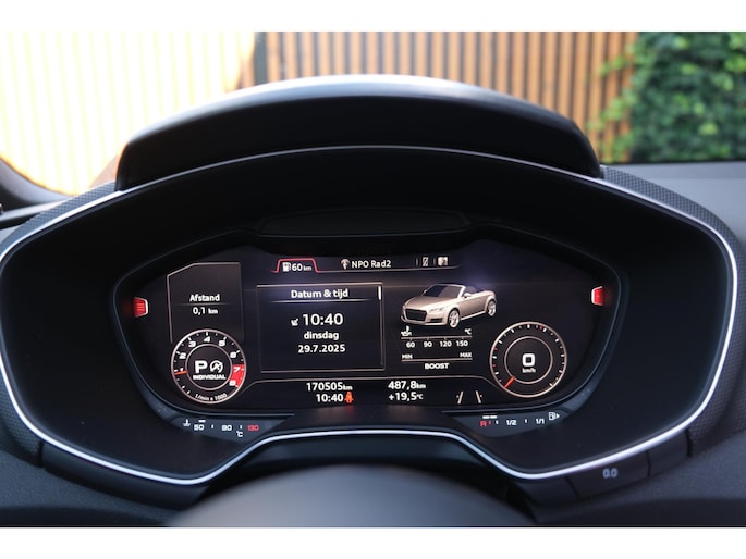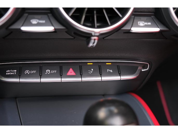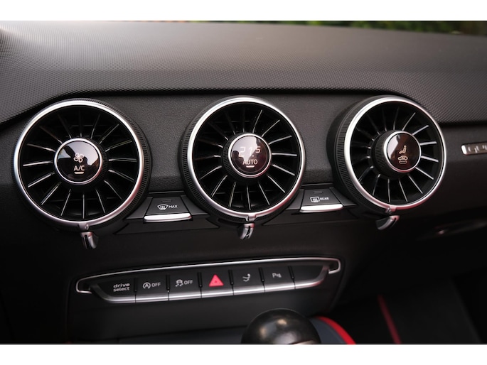 Deze TTS is uitgevoerd met het Pro Line + pakket, waardoor hij zeer compleet is uitgerust. Aan boord vind je onder andere nekverwarming en stoelverwarming, ideaal voor rijden met open dak in elk seizoen. Het Bang & Olufsen Sound System zorgt voor indrukwekkende audiokwaliteit, zelfs bij hogere snelheden. Daarnaast is de auto voorzien van keyless entry, DAB-radio, LED-koplampen en lane assist voor extra veiligheid en comfort. De elektrisch verstelbare sportstoelen bieden optimale ondersteuning bij sportief rijden, en het S-Line pakket benadrukt de sportieve uitstraling met scherpere accenten en een krachtiger onderstel.