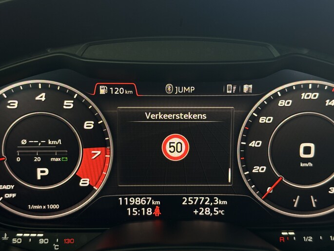 Het high performance audiosysteem is volledig afgestemd op de akoestiek van de auto; genieten dus! Met de automatische airconditioning selecteert u de gewenste temperatuur. Het systeem doet de rest. De parkeersensoren registreren alles. Ook dat ene paaltje dat net buiten uw gezichtsveld valt. In deze Audi kunt u zich concentreren op het verkeer, terwijl de auto de omgeving voor u in de gaten houdt. Een automatisch inschakelbare verlichting zorgt dat de verlichting aangaat als het donkerder wordt - in tunnels bijvoorbeeld - en de regensensor schakelt de ruitenwissers in als het nodig is. U hoeft er niets aan te doen. De voordelen van de aanwezige cruise control hoeven we niet uit te leggen. Een mooie, constante snelheid - niet te snel, niet te langzaam. Precies goed. Ook navigatiesysteem met harde schijf, lederen sportstuur, keyless entry en automatisch dimmende binnenspiegel horen tot de voorzieningen op deze auto.