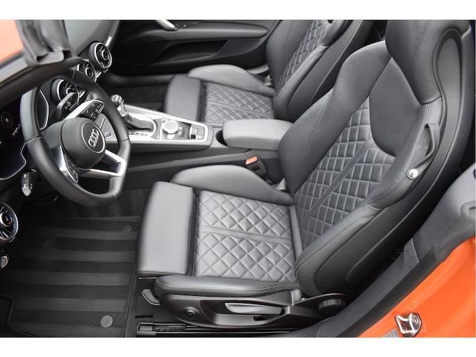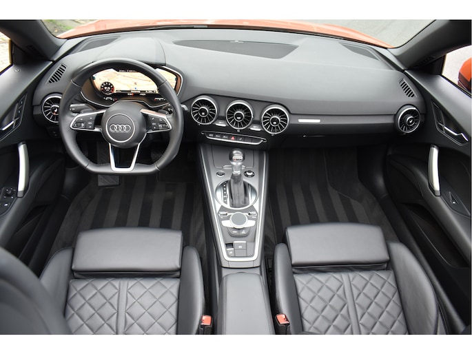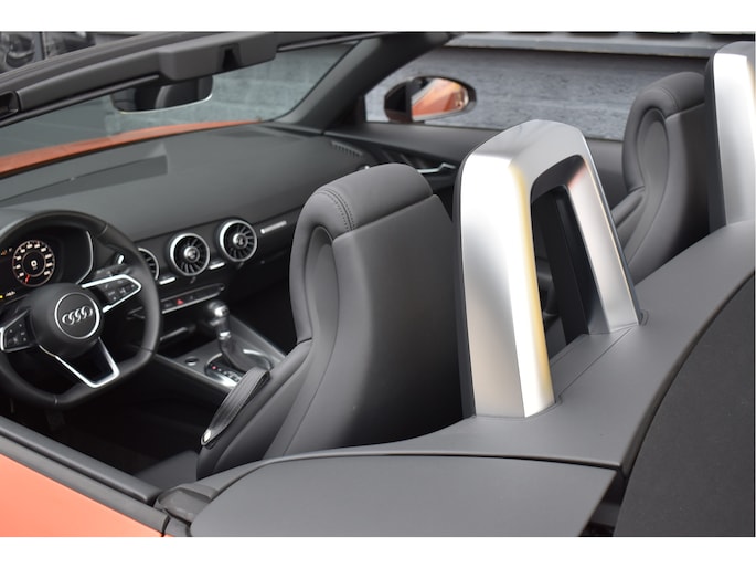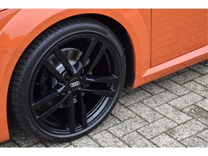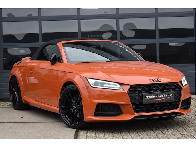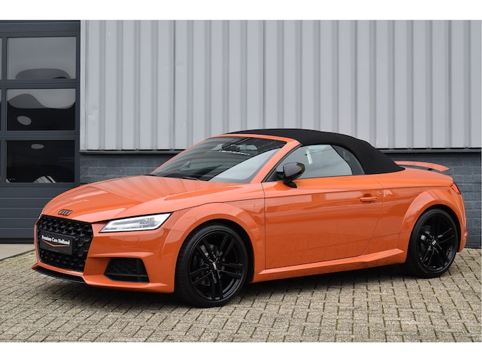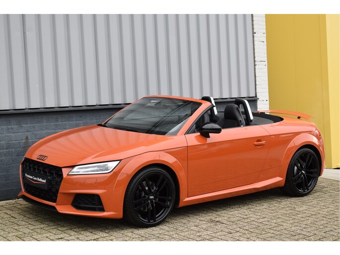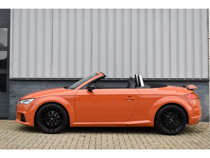 Unieke Audi TT Roadster 40 Tfsi Black Edition Puls Orange 09-2021 met slechts 68 Dkm DLR Onderhouden van 1e eigenaar Opties: Led Koplampen Digitale Cockpit Navigatiesysteem RS-Sportstoelen Keyless Entry/Start Stoelverwarming Climate Control Afgevlakt Sportstuur Bluetooth Telefoon Drive Select Instelbaar Spiegels Elektrisch Inklapbaar DAB Radio Ontvanger Led Achterlichten Black Optik Pakket 19 Inch Originele Audi Velgen