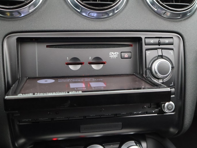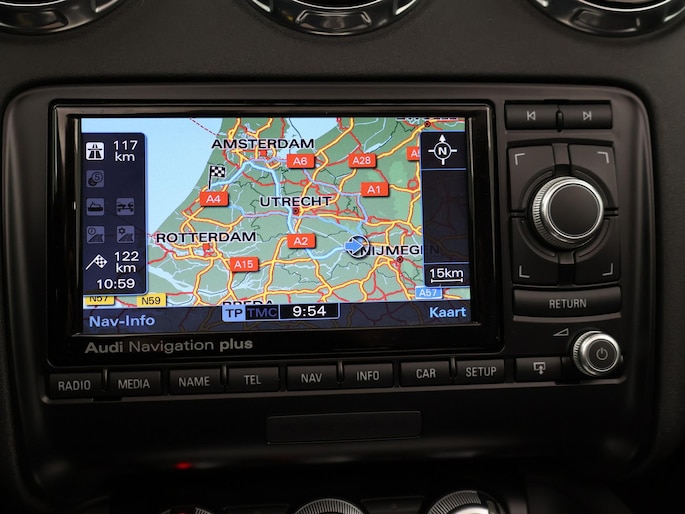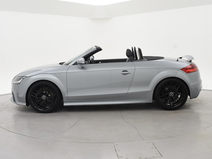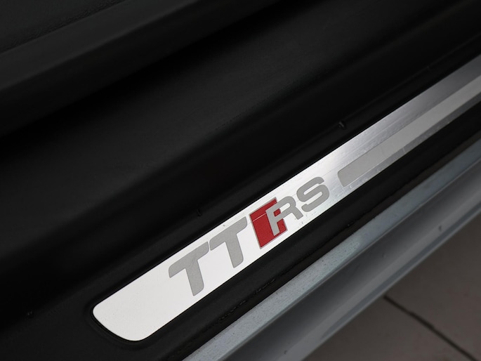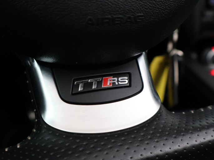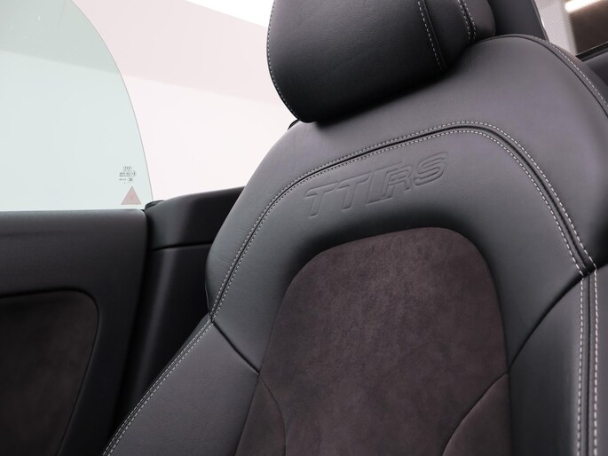 TT RS / TTRS met de 2.5 5-cilinder turbomotor met 340 PK vermogen en Quattro vierwielaandrijving, Zwart leder/alcantara sportinterieur met TTRS logo in de hoofdsteunen, 19 inch hoogglans zwarte velgen, Bose premium sound, Stoelverwarming, Navigatie, Cruise control, Climate control, Leder sportstuurwiel met vlakke onderzijde, Parkeersensoren, Xenon verlichting met LED dagrijverlichting, Elektronische achterspoiler, Elektrische cabriokap.