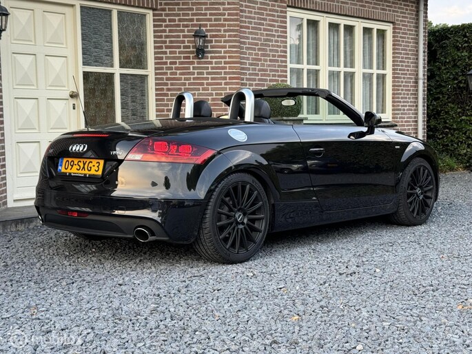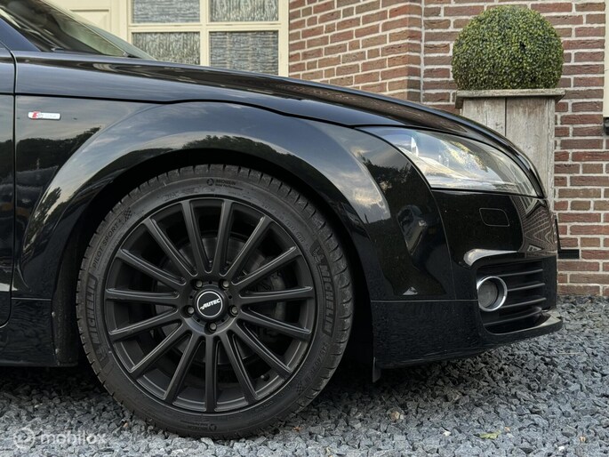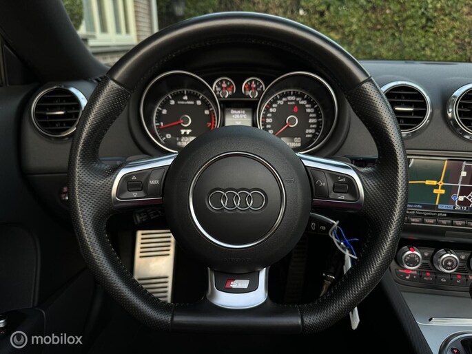 Mooie en keurig nette Audi TT S-line Automaat voorzien van mooie opties zoals lederen sportstoelen met stoelverwarming, navigatie, cruise control, xenon en parkeersensoren. en daarnaast ook nog extra's zoals een schakelbaar uitlaatsysteem, bluetooth module voor BTaudio, en de rolbeugels hebben we zwart laten wrappen (dit ziet er sportiever uit). Ook hebben we de auto professioneel gechipt naar +/- 275PK. De auto is afkomstig van de eerste eigenaar welke er super zuinig op is geweest. En zelf hebben we deze auto de laatste 2 zomers met veel plezier gereden. Het onderhoud is helemaal bij, en is voorzien van nieuwe APK en de auto is compleet met met boekjes, 2 sleutels en teller rapport.