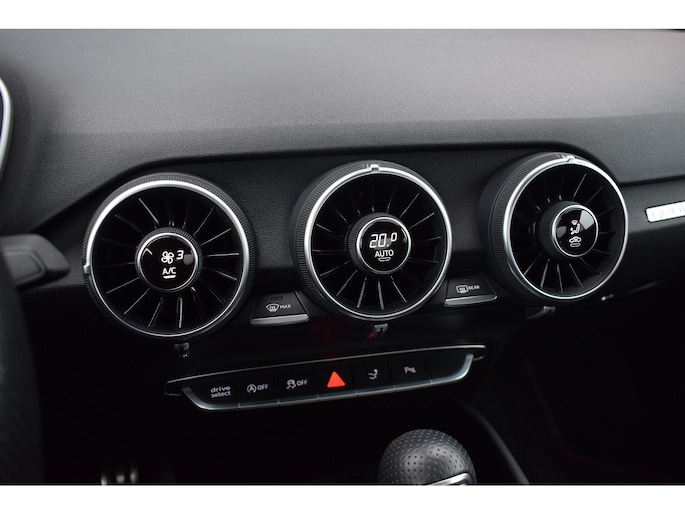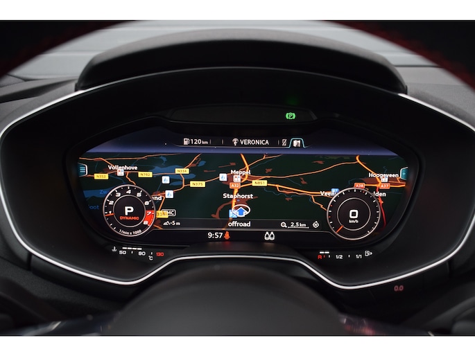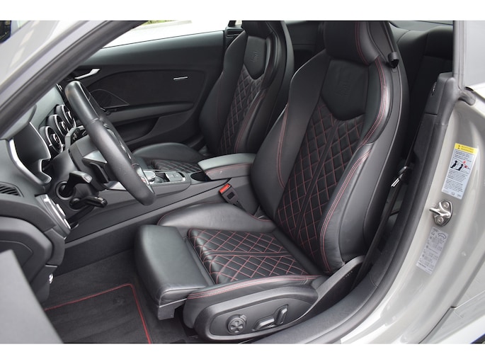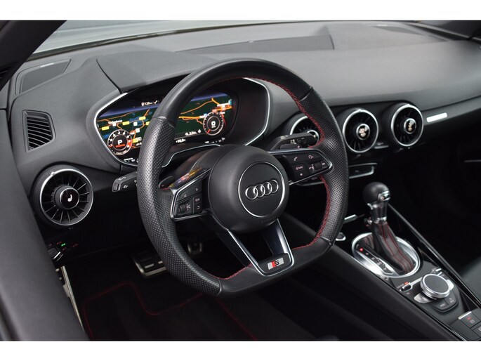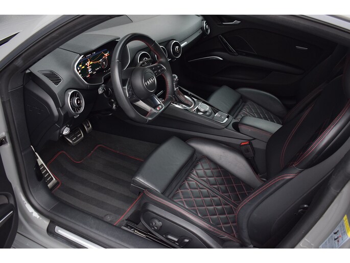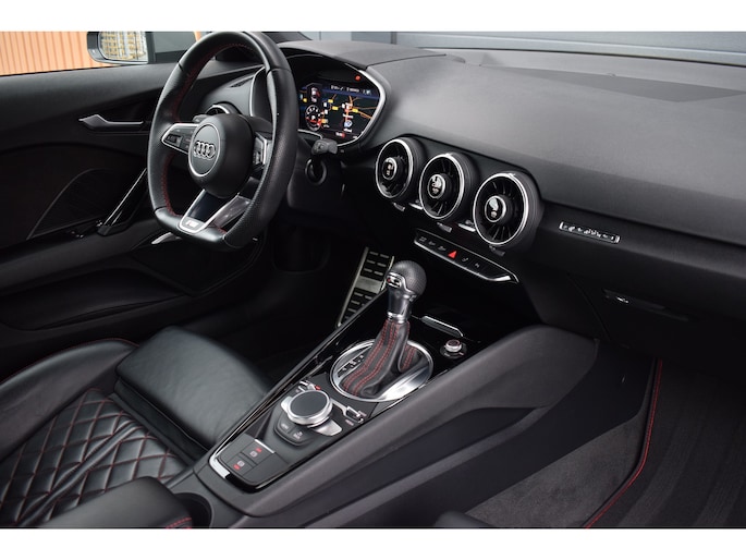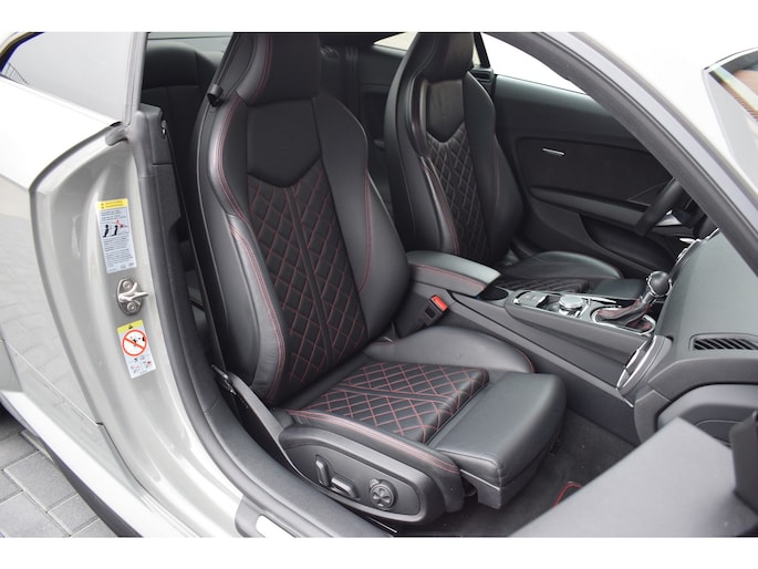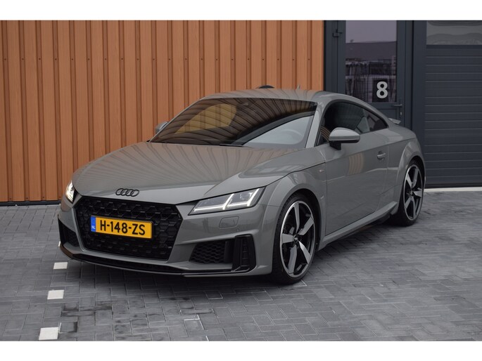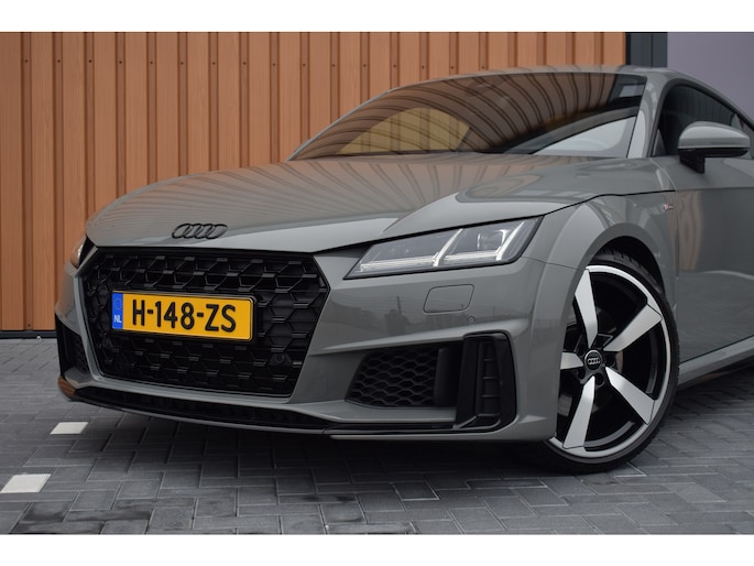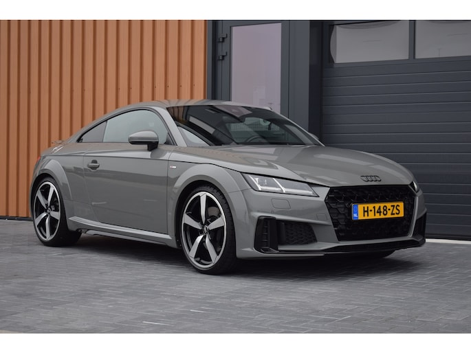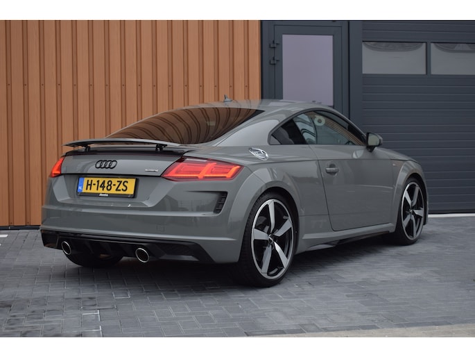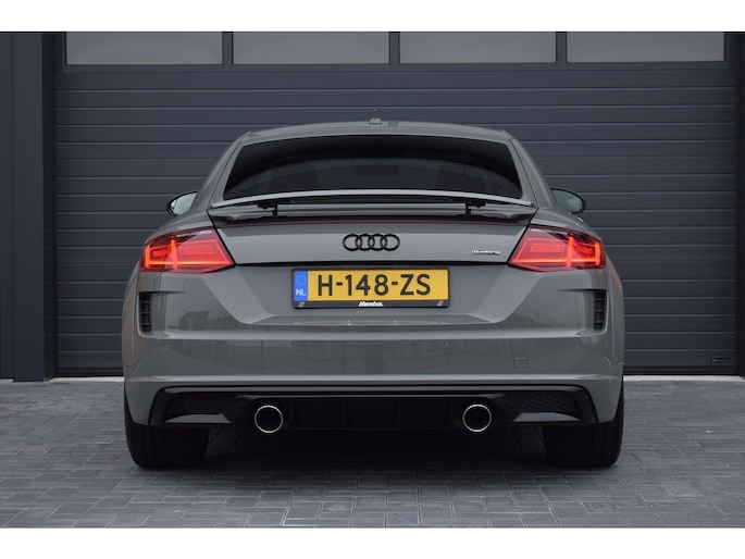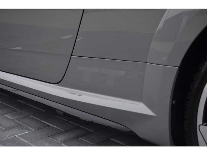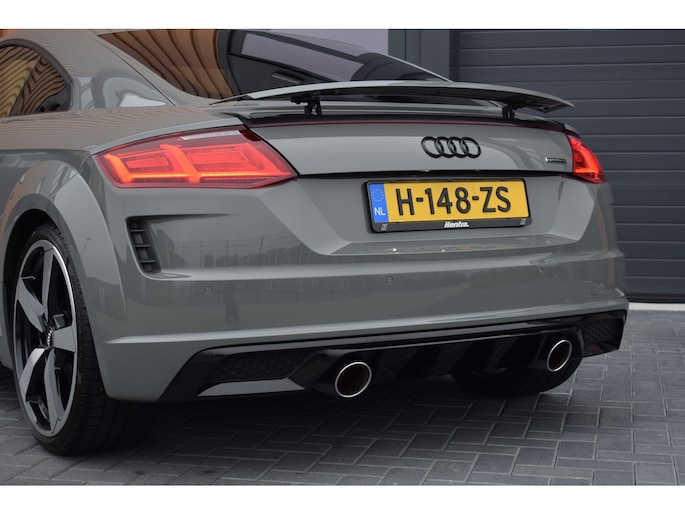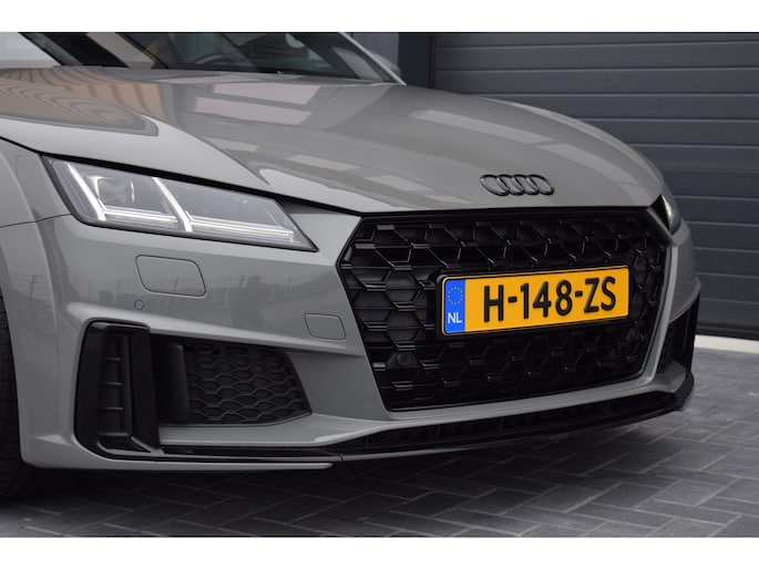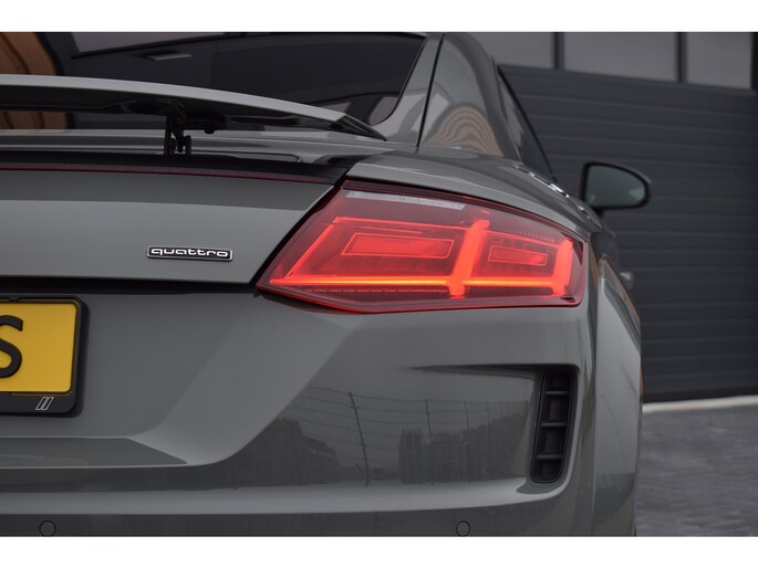 Audi TT 45 TFSI 245pk Quattro. Unieke Audi TT in de kleur Quantum Grey i.c.m. Audi Exclusive interieur. Uitgevoerd met o.a.: RS stoelen met rode stiksels, Dasboardinleg pianolakzwart, MMI Navigatie plus, Apple Carplay, Digitale radio ontvangst, Bang&Olufsen soundsysteem, Climate control, Cruise control, Lane Assist, Lederen multifunctioneel sportstuur, Voorstoelen elektrisch verstelbaar incl. lendesteunen, Stoelverwarming, Lichtmetalen velgen 20", Sportonderstel, Keyless entry, Buitenspiegels elektrisch verwarm- en inklapbaar, Parkeersensoren voor en achter, LED koplampen en achterlichten, Dynamische knipperlichten achter, Privacy glas achter.