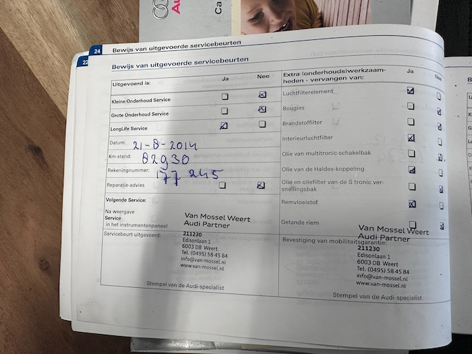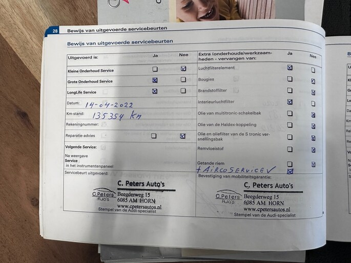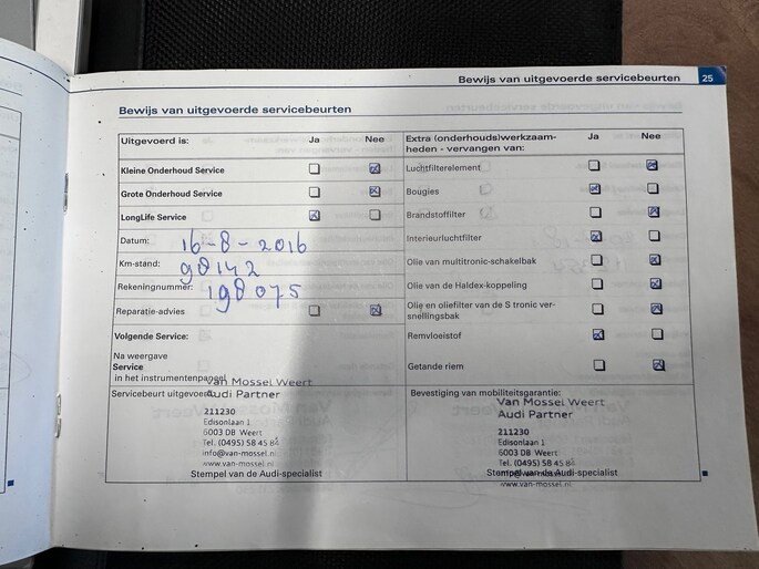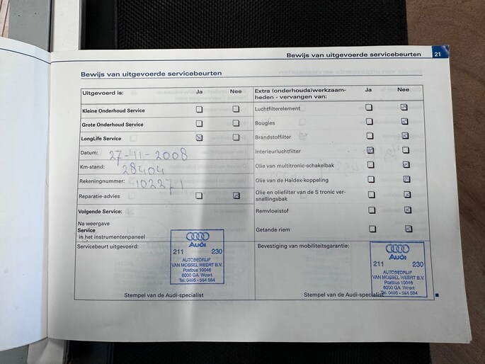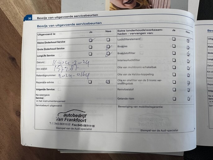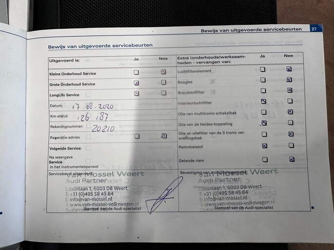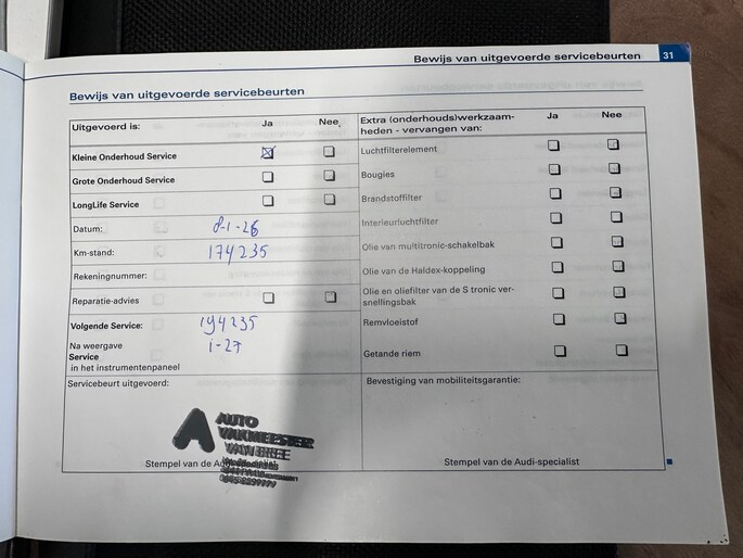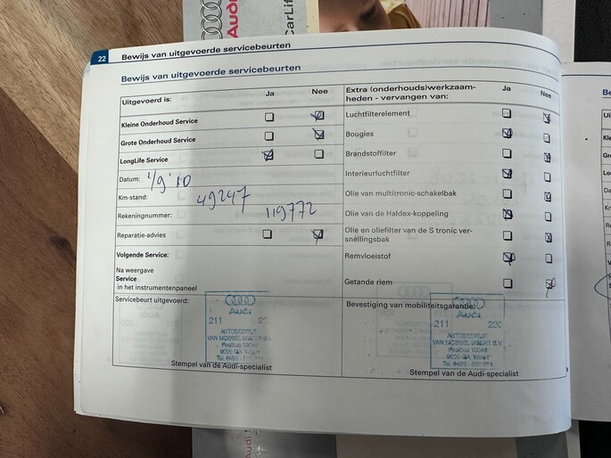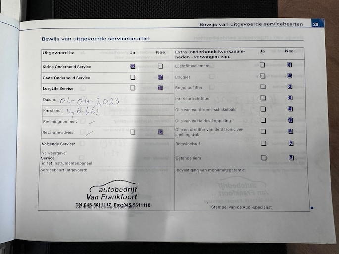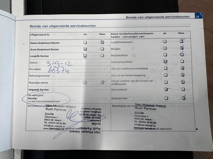 Onderhoudsboekjes: Aanwezig