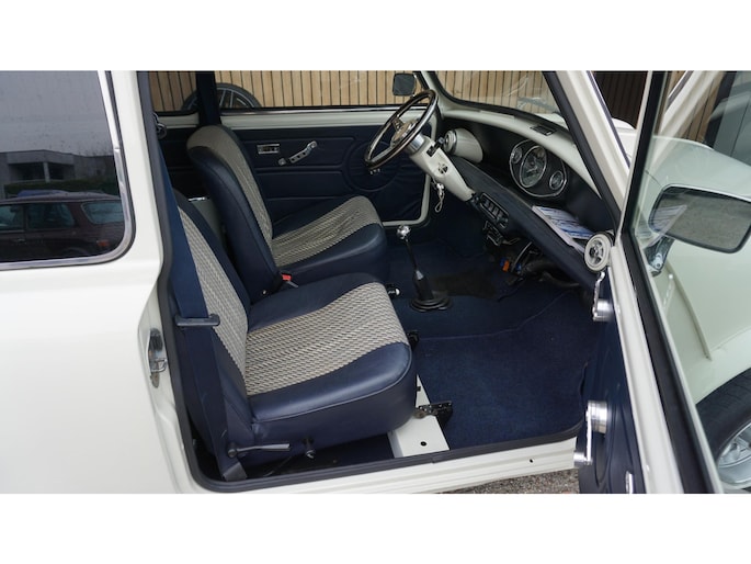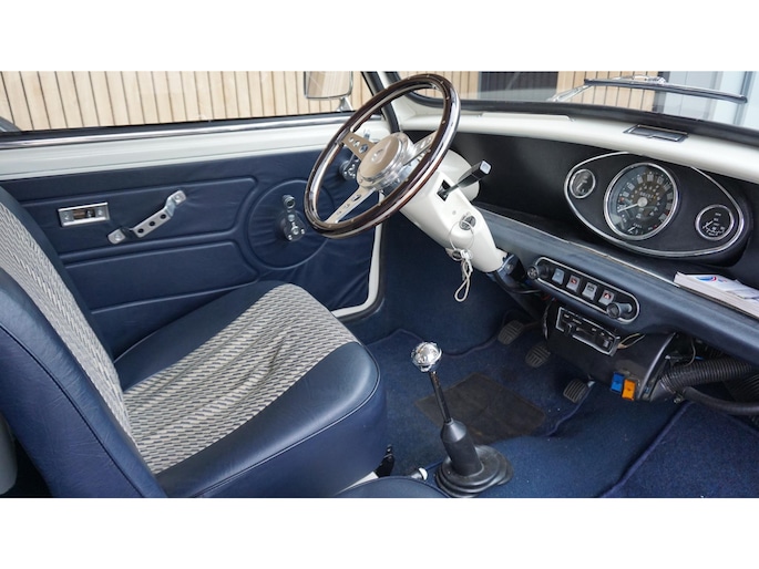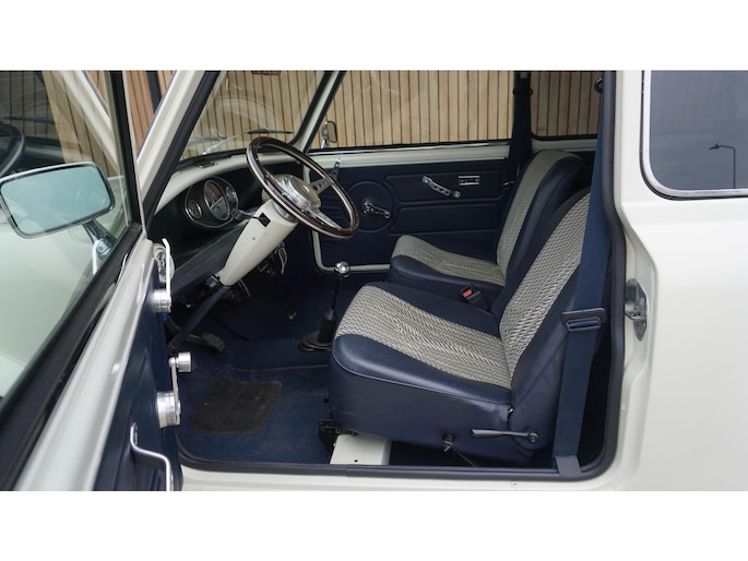 Uit Privé collectie te koop. Austin Mini 1100 Special. Betreft een originele Nederlandse Mini. in Verleden gerestaureerd en in uni-white gespoten(origineel blauw) afgelezen km. Stand 7542km. De Mini is voorzien van o.a. Houtenstuurwiel.LM.velgen.Getinte ramen rondom.Grootlichtlampen.Chrome accenten exterieur.Verbrede-spatborden.2