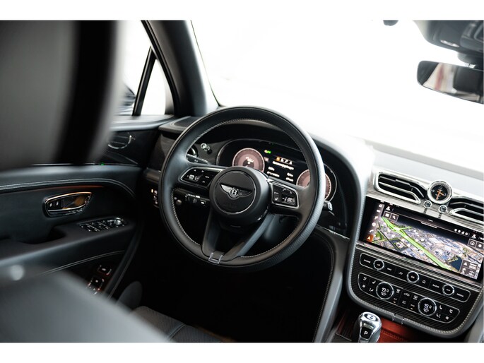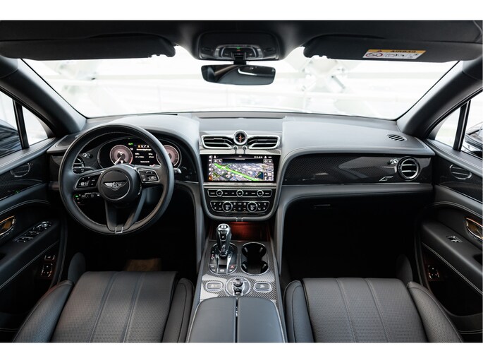 Binnenin vinden we het verfijnde Beluga-interieur, dat zwart leder combineert met luxueuze materialen om een sfeer van exclusiviteit en vakmanschap te creëren. De stoelen en het stuurwiel zijn bekleed met de mooiste leersoorten, terwijl de carbon interieurpanelen een moderne en sportieve uitstraling geven. Deze combinatie van het klassieke en het hedendaagse maakt het interieur van deze Bentayga V8 S niet alleen esthetisch aantrekkelijk, maar ook bijzonder comfortabel voor zowel de bestuurder als de passagiers. Uiteraard is het interieur van alle gemakken voorzien zoals massage functie in de verwarmde en geventileerde stoelen. Daarnaast biedt de auto alle hulpmiddelen voor de bestuurder zoals adaptieve systemen en nachtzicht assistent.