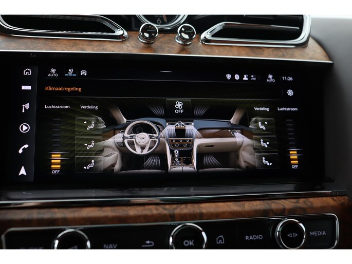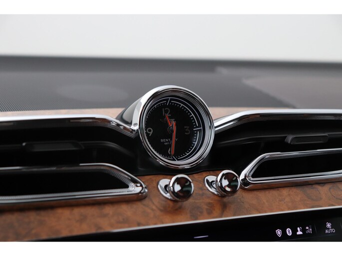 Het interieur kenmerkt zich door hoogwaardige houtinleg en een verfijnde afwerking, met comfortabele stoelen die zijn voorzien van ventilatie- en massagefunctie. Daarnaast beschikt deze Bentayga over een panoramadak, wat zorgt voor een ruimtelijk gevoel in het interieur. Ook is de auto voorzien van een 360° camera, luchtvering en 22 inch lichtmetalen velgen.