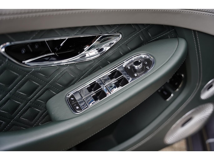 De auto is afgewerkt in Hallmark Grey Metallic met een uniek grijs/groen exclusief lederen interieur – een zeldzame en elegante kleurcombinatie.