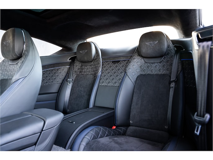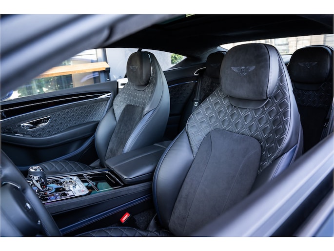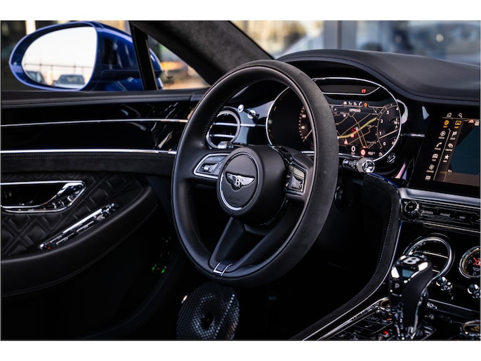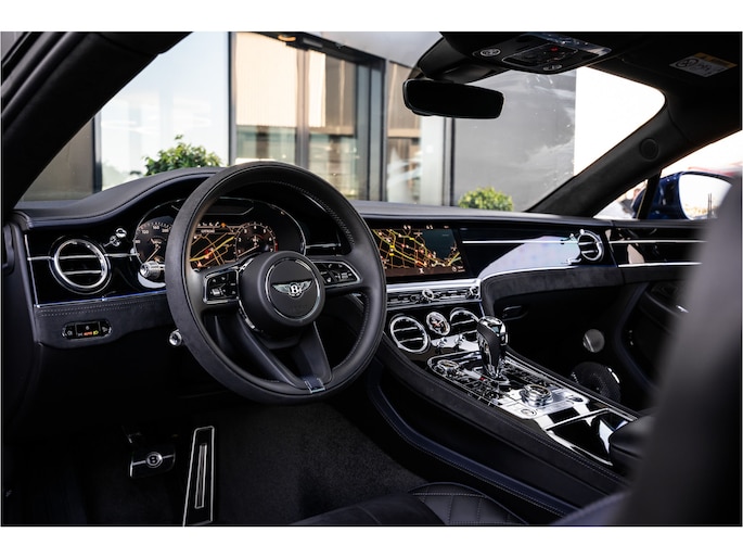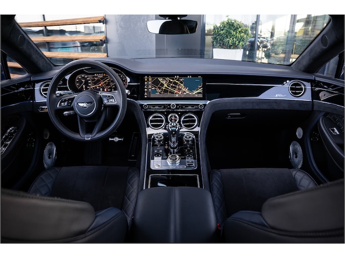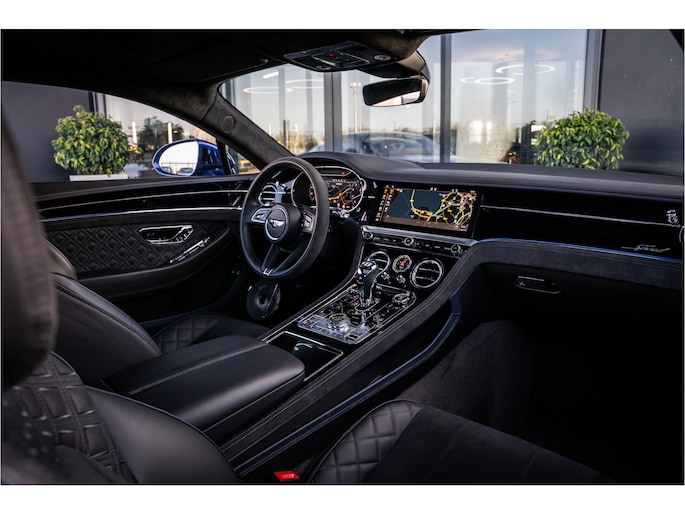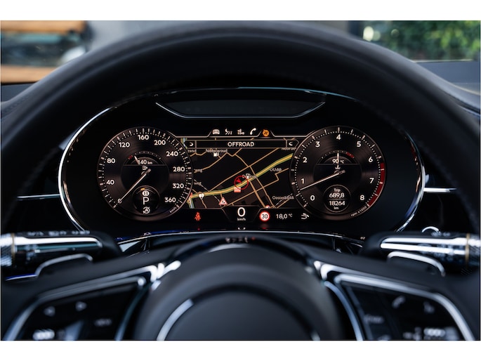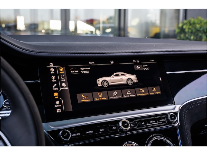 Deze Bentley Continental GT staat voor u klaar. Een geweldige, nog jonge occasion die goed is voor gemakkelijk nog een tonnetje of twee op de teller. Deze auto is bijna nieuw, ondanks dat hij uit 2022 komt; hij heeft slechts 18264 kilometer afgelegd. De aandrijving van deze Bentley wordt verzorgd door een twaalfcilinder benzinemotor en een automatische transmissie. Even een paar wel héél aantrekkelijke pluspunten van deze fraaie auto: een elektrisch bediend glazen panorama dak, een elektrisch bedienbare achterklep en een prachtig lederen interieur! U past de stoelen moeiteloos aan, ze zijn elektrisch in te stellen en hebben bovendien een geheugen. Een zeer aantrekkelijke extra van deze Bentley Continental GT is de luchtvering, die zorgt voor een fantastische wegligging. Pak aan, 't is winter! Zo'n verwarmd stuurwiel is dan bijzonder prettig! Voorzien van matrix LED-verlichting. De auto dimt precies dat deel van de lichtstraal waar de voor- of tegenliggers in rijden. De overige segmenten blijven aan en verlichten de weg. Natuurlijk behoren 22 inch lichtmetalen velgen, adaptief dempingsysteem, geluidsisolerende ramen, elektrisch inklapbare buitenspiegels en LED-achterlichten ook tot de uitrusting van deze complete auto.