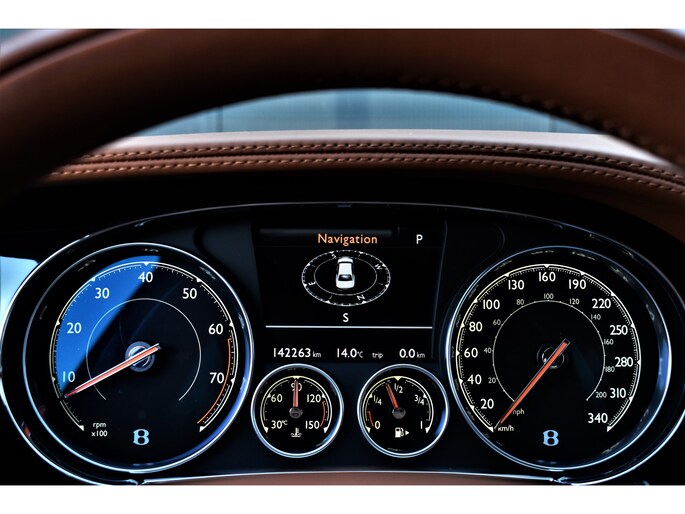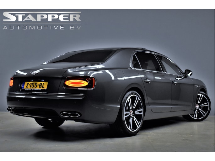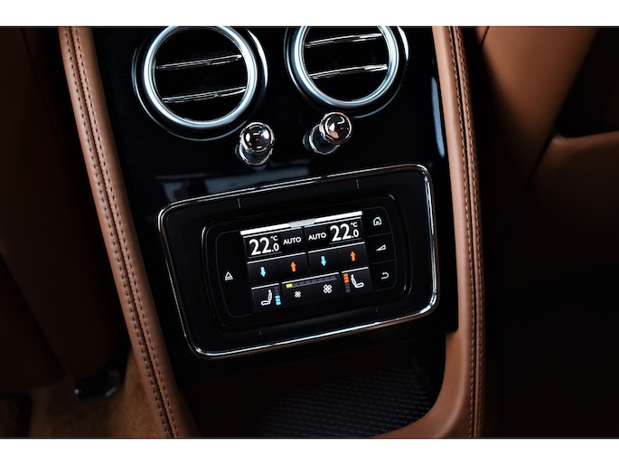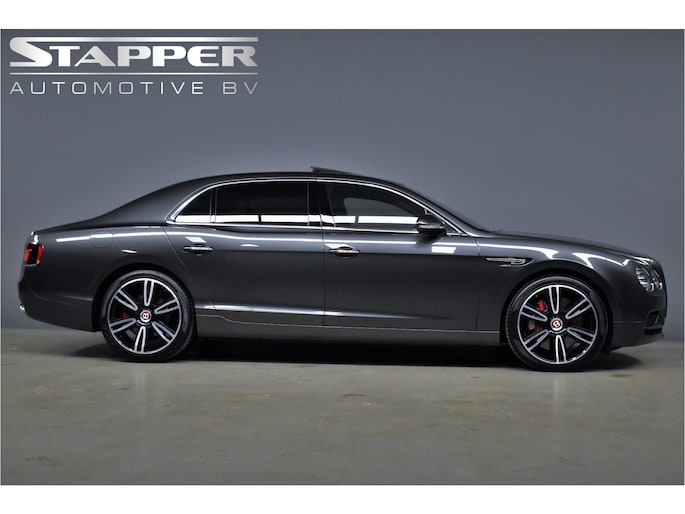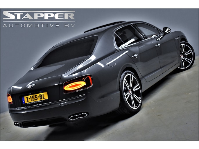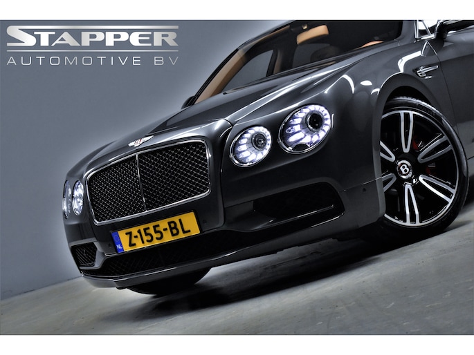 Onze Bentley Flying Spur 4.0 V8 S: deze luxueuze, karakteristieke en ongelofelijk krachtige sedan is tot op het bot gepersonaliseerd. Dit is onder andere te zien aan het geweldig smaakvol samengestelde interieur -gefabriceerd door Mulliner- dat van top tot teen is uitgevoerd in de kleur cognac, en aan alle geweldige opties die er aan toegevoegd zijn, waaronder: elektrisch verstelbare massagestoelen (voor-en achter), luchtvering, Naim audio, panoramadak, en nog veel meer. Een werkelijk vlaggenschip dat zowel technisch als cosmetisch in topconditie verkeert. Niet alleen is deze Flying Spur volledig (Bentley) Dealer Onderhouden, ook kunnen wij met zekerheid zeggen dat deze bolide in het echt nét zo mooi is als op de foto's. Kom vrijblijvend bij ons in de showroom langs en u zult niet teleurgesteld worden!