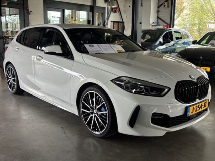 Hij is stijlvol en comfortabel, deze BMW 1-Serie (f40) M uitvoering Plus pack en is niet zomaar een M-uitvoering; M- remmen met grotere schijven en blauwe remklauwen (6 zuigers) , M-veiligheidsgordels, M-Sportbesturing, 19 inch M Sportvelgen, M-sport stuur, M-Sport onderstel, zwarte hemel. Parkeren kan deze BMW zelf en de laatste 50 meter rijdt deze 1-serie helemaal zelf weer achteruit. In deze auto vindt u een benzinemotor en een handgeschakelde zesversnellingsbak. Houdt u van een stijlvolle uitvoering? Dan zal het lederen interieur u zeker bevallen. Lekker hoor, die verwarmbare voorstoelen. Helemaal op koude dagen. Mooi om te zien en heerlijk om in te zitten zijn de sportstoelen, die u onderweg optimale ondersteuning geven. In deze auto profiteert u onder andere ook van: 19 inch lichtmetalen velgen, LED koplampen, sportonderstel, adaptieve remlichten, antracietkleurige hemelbekleding en donker getint glas achter.