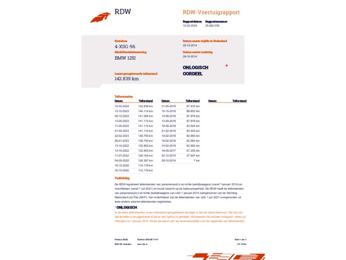 Kilometerstand gecontroleerd