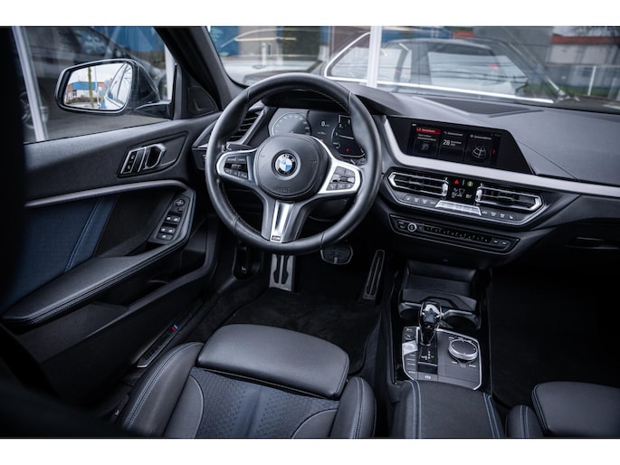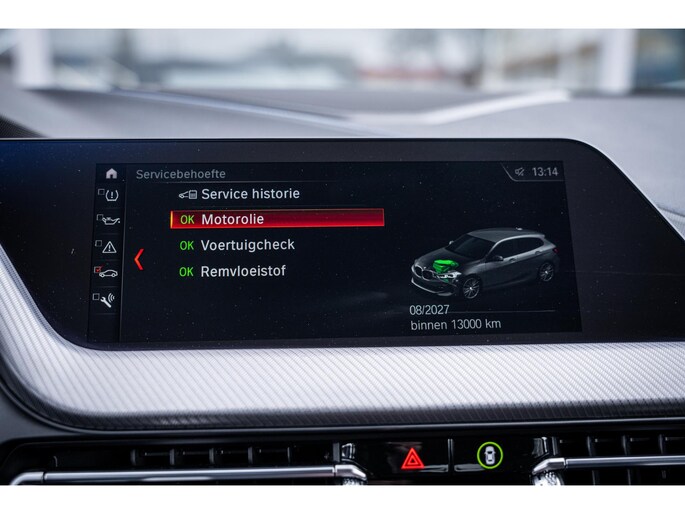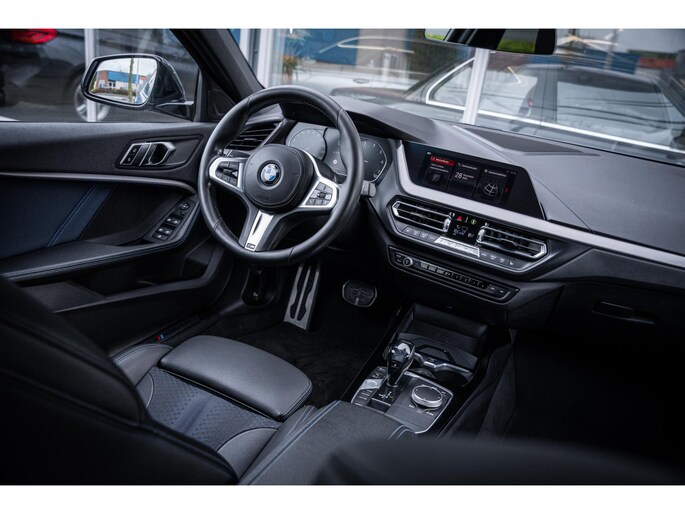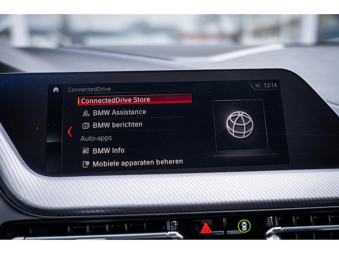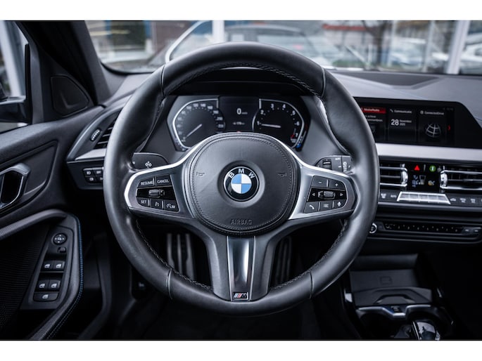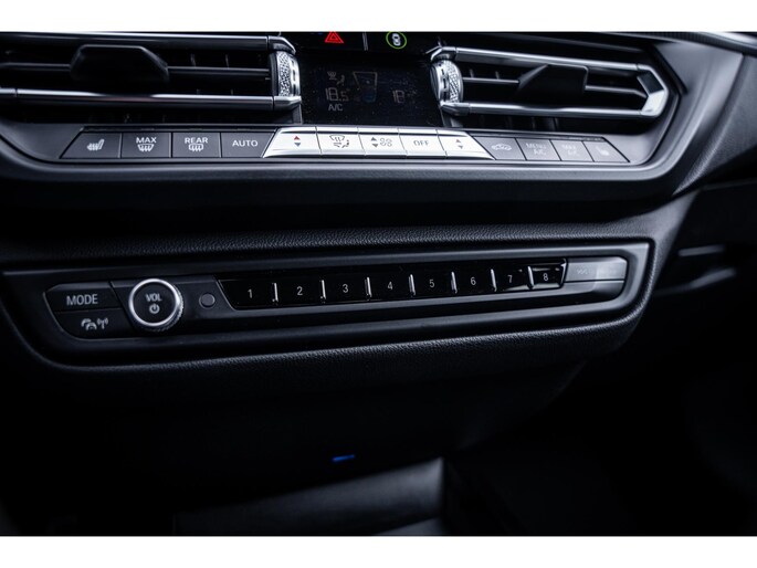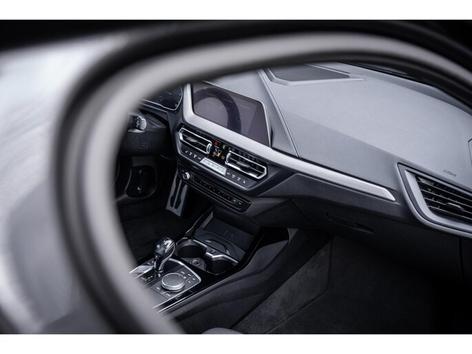 Deze BMW 1-serie is voorzien van remote services. Via uw smartphone bedient u diverse functies ook op afstand en krijgt u informatie over de status van uw auto. Automatische airconditioning verwarmt of koelt het interieur met een druk op de knop. Klik de smartphone in de houder en de draadloze telefoonlader zorgt voor een volle accu. Voor een storingvrije radio-ontvangst zorgt de ingebouwde DAB-ontvanger. Meer rijcomfort en minder brandstofgebruik? Even de cruise control instellen en dan ontspannen rijden! Extra opties op deze auto zijn: lederen sportstuur, automatisch dimmende binnenspiegel, isofix-aansluiting, usb-aansluiting, centrale portiervergrendeling en bagage afdekhoes.