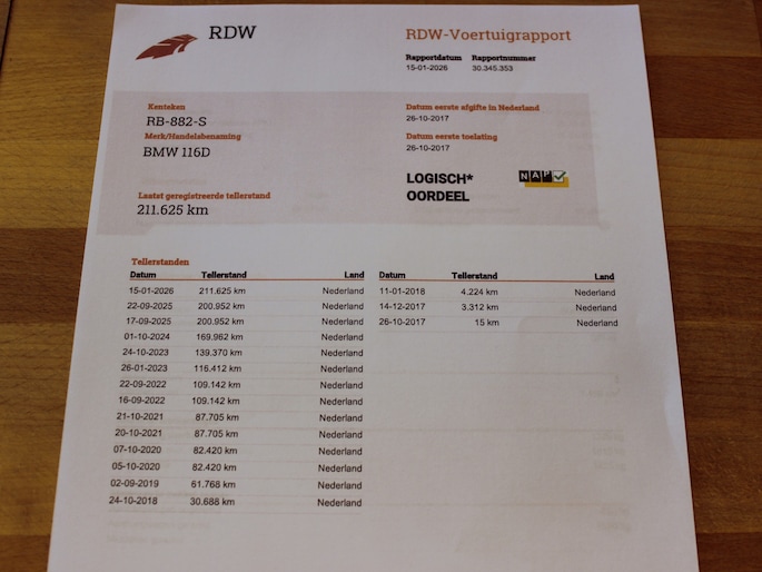 Kilometerstand gecontroleerd