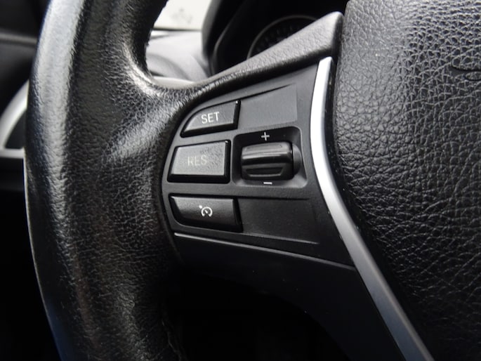 Zorgeloos en geconcentreerd rijden? Het navigatiesysteem wijst de weg! Tot de standaard uitrusting van deze auto hoort ook automatische airconditioning. Met de audiobediening op het stuur bedient u het audiosysteem zonder uw ogen van de weg te halen. Parkeersensoren zijn een waardevolle toevoeging aan deze auto. De sensoren waarschuwen tijdens het parkeren en voorkomen schade aan de auto. Er is cruise control aan boord, voor veilige en zuinige kilometers. U bent in deze BMW ook voorzien van buitentemperatuurmeter, lederen stuur, centrale deurvergrendeling met afstandsbediening en boordcomputer.