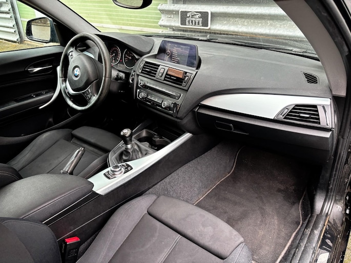 Een prachtige 116i met een sportieve uitstraling. Voorzien van vele opties zoals onder andere: Parkeersensor achter, Automatische airco, bandenspanningscontrolesysteem. cruise control, elektronisch Stabiliteits Programma, multimedia, navigatiesysteem full map, Lederen sportstuur, Start/stop systeem.
