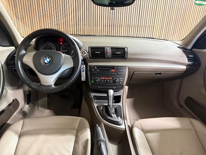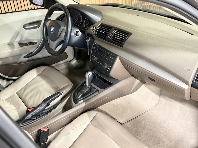 Opschieten, stilstaan, uren maken... uw werk vraagt al genoeg van u. Met deze zakenauto krijgt u er ook veel voor terug. De aandrijving van deze BMW komt voor rekening van een viercilinder motor en een automatische transmissie. Van binnen is deze BMW 1-serie mooi uitgevoerd met een classy lederen interieur. Voorin is het 's winters genieten met de verwarmbare voorstoelen voor zowel bestuurder als bijrijder. Licht, lucht, ruimte en gemak wordt verzorgd door het elektrisch bedienbare glazen panoramadak. Ook is de auto voorzien van: 16 inch lichtmetalen velgen, getint glas en in delen neerklapbare achterbank.