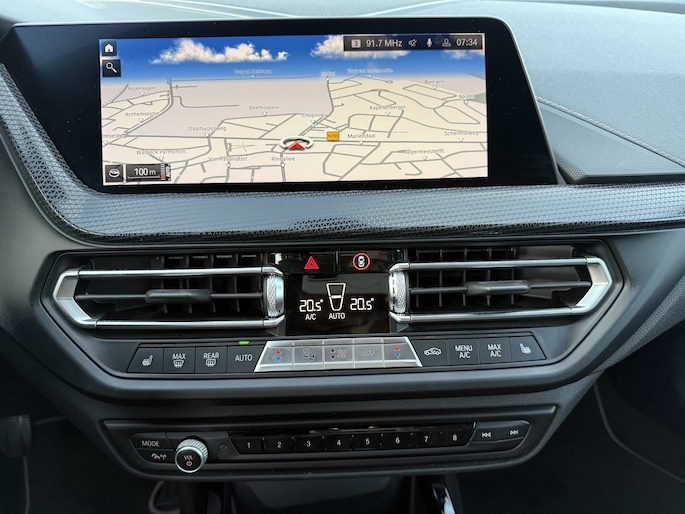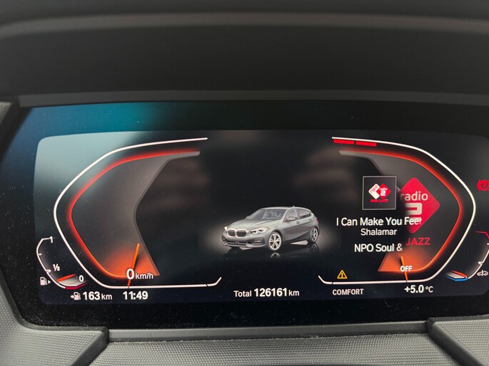 In één oogopslag heeft u alle benodigde functies onderweg in beeld, dankzij het slim ingedeelde digitale dashboard. Terwijl het full map navigatiesysteem de ideale route voor u uitstippelt, geniet u van de kwaliteit van het audio-installatiesysteem met DAB-ontvangst. De bediening is bovendien gemakkelijk via knoppen op het stuur of via spraak. De auto is ook uitgevoerd met automatische airconditioning. Soms heeft u meer parkeerruimte dan u denkt. Maar soms ook niet. De parkeersensoren vertellen precies hoeveel. Om de veiligheid onderweg te verhogen, heeft deze BMW zowel een automatisch inschakelbare verlichting als een regensensor aan boord, zodat hij zelf de verlichting en de ruitenwissers kan inschakelen. Ook cruise control, isofix-aansluiting, centrale deurvergrendeling met afstandsbediening en boordcomputer horen tot de voorzieningen op deze auto.