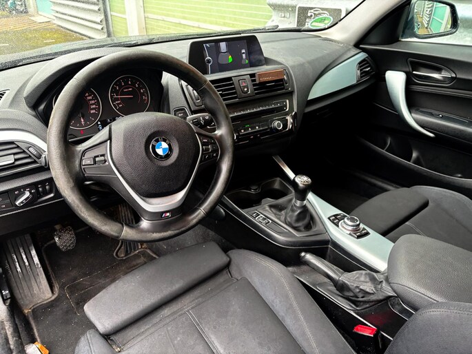 Een prachtige 116i met een sportieve uitstraling. Voorzien van vele opties zoals onder andere: Parkeersensor achter, Automatische airco, bandenspanningscontrolesysteem. cruise control, elektronisch Stabiliteits Programma, multimedia, navigatiesysteem full map, Lederen sportstuur, Start/stop systeem.
