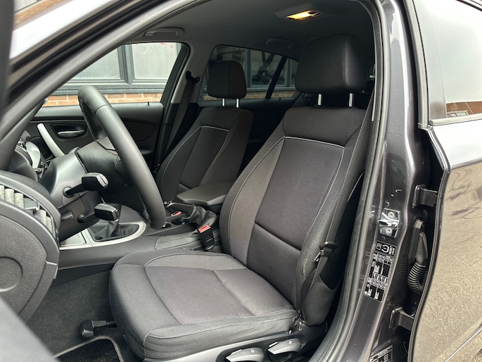 Met een BMW weet u: dit is rijden op topniveau. Of, zoals ze zelf zeggen: 'BMW maakt rijden geweldig'. Formidabele motortechniek en ultiem sportief rijplezier. De aandrijving van deze BMW wordt verzorgd door een viercilinder motor en een handgeschakelde versnellingsbak. Deze BMW 1-serie heeft verwarmbare voorstoelen, voor zowel bestuurder als bijrijder. Scherpe bochten, pittige acceleraties? In de sportstoelen blijft u altijd in positie. In het begin is het even wennen, dat start-stopsysteem. Bij het eerste stoplicht, in de eerste file. Maar geloof het maar: bij de eerste tankbeurt is dat over. Al kan dat wat langer duren, want het scheelt behoorlijk in brandstof! U wordt in deze auto ook getrakteerd op 17 inch lichtmetalen velgen, sportonderstel, donker getint glas achter en in delen neerklapbare achterbank.