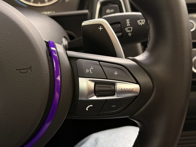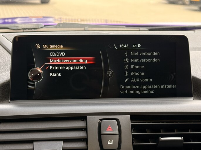 Connected Services zorgen ervoor dat de belangrijkste functies en data van de auto altijd en overal te checken zijn. Gewoon via de app op de smartphone. In deze 1-serie vindt u schakelaars op het stuur om het audio-installatiesysteem te bedienen en het navigatiesysteem met harde schijf. Bij het wisselen van rijbaan kan een dode hoek ontstaan waardoor achterliggers te dichtbij kunnen komen. De achteropkomend verkeer waarschuwing geeft in dat geval automatisch een signaal. Het spreekt voor zich dat een auto als deze ook van automatische airconditioning is voorzien. Hoeveel ruimte u nog heeft bij het insteken? De parkeersensoren laten het weten! Da's gemakkelijk! U bent in deze BMW ook voorzien van schakelpaddles aan het stuur, cruise control, keyless entry, automatisch dimmende binnenspiegel, centrale deurvergrendeling met afstandsbediening en boordcomputer.