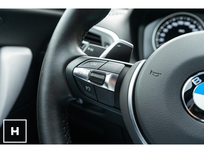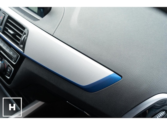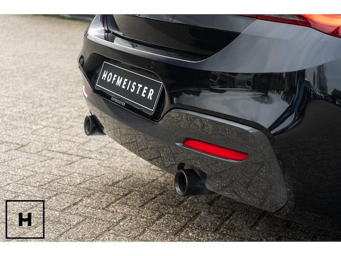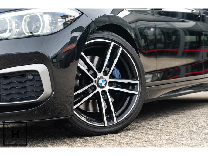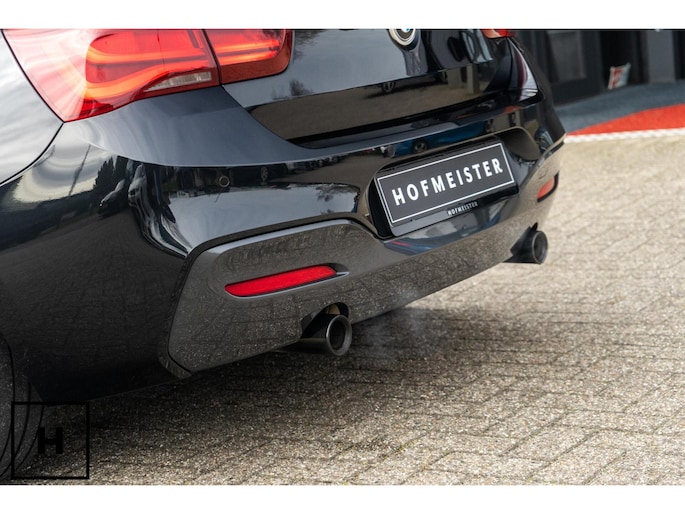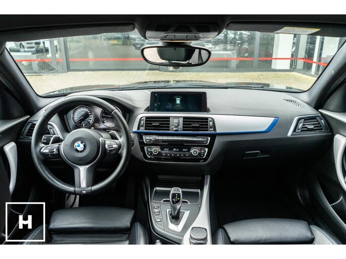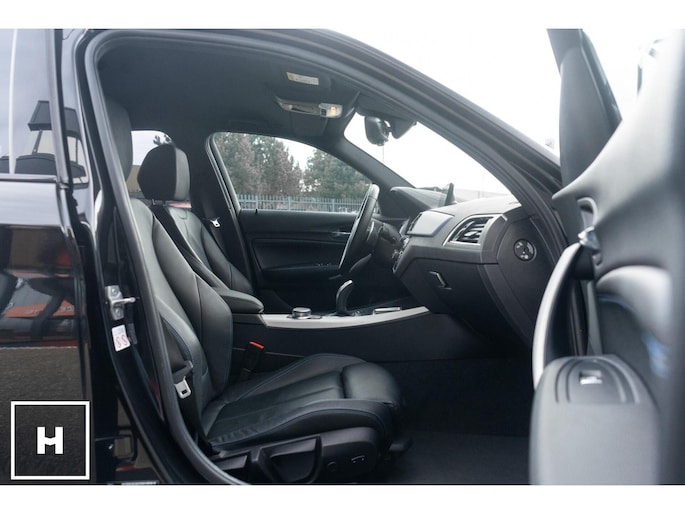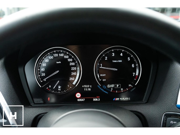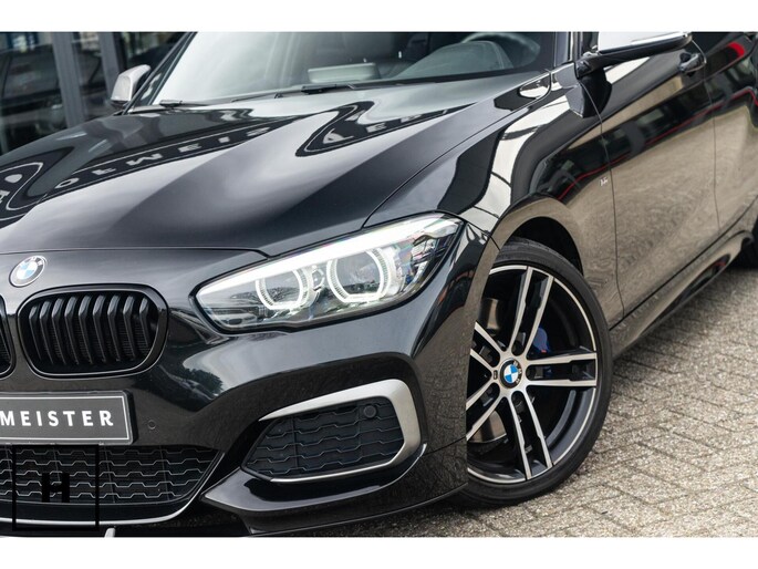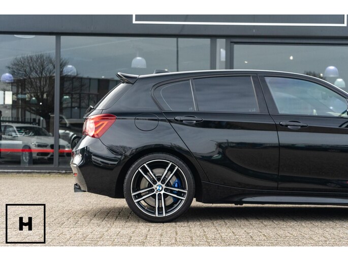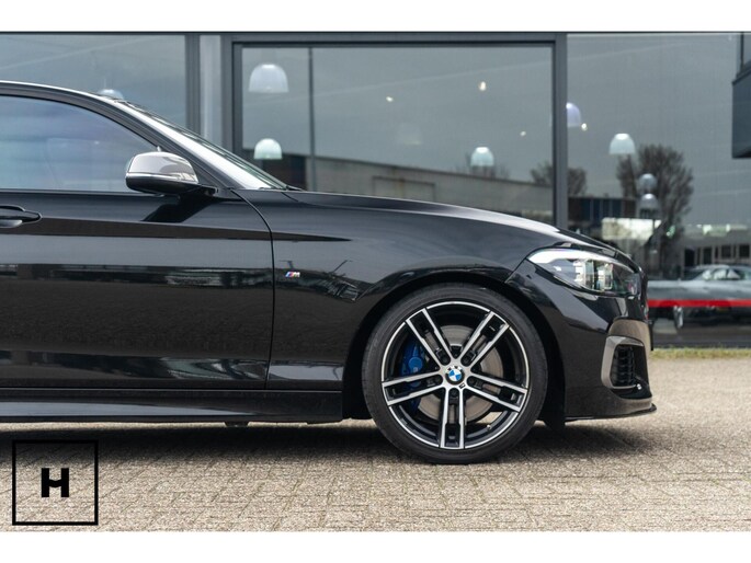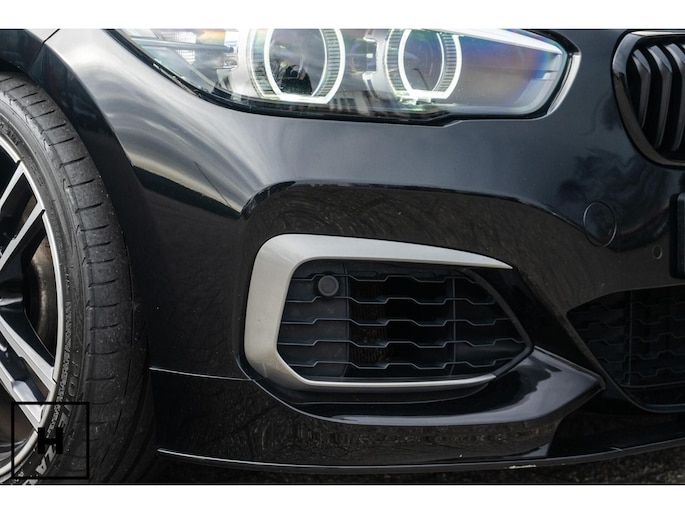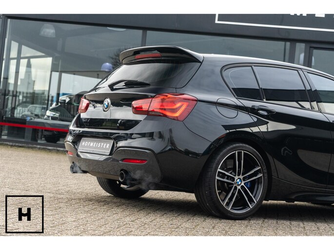 In het zwart metallic is een M140i welhaast incognito. De ‘kenner’ spot de dubbele uitlaat, de afwijkende kleur spiegelkappen en inserts in de voorbumper. Het is direct zichtbaar dat het een zgn. ‘LCI2’ betreft, met de gewilde Style 719M wielen in ‘bicolor’ en in het interieur de nieuwere digitale teller unit (6WA). Dit is feitelijk de allerlaatste écht goed klinkende 1 Serie, want één van de laatste zonder het geluiddempende ‘OPF’ filter in de uitlaat. (Behoorlijk) ‘op smaak’ gebracht middels een voor- en achterspoiler én motor- en versnellingsbak optimalisatie van de specialisten van Mosselman Turbo Systems. Hierdoor is het enorme verborgen potentieel van de machtige B58 motor ontketent, zó hoort hij te zijn!