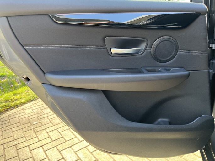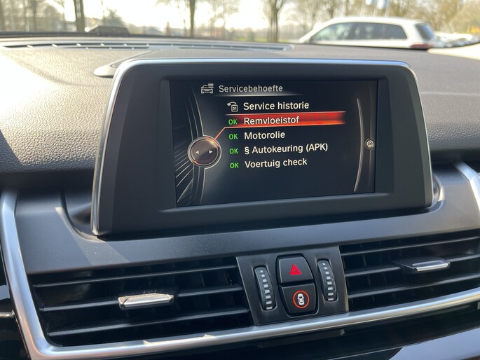 Zoals u mag verwachten van deze BMW 2-serie Active Tourer is hij uitgerust met een reeks aan actieve veiligheidssystemen. Onderweg zorgt verkeersborddetectie ervoor dat u geen waarschuwingsbord mist. Het Lane-keeping systeem doet precies wat nodig is: waarschuwen en corrigeren bij onbedoelde overschrijding van de rijstrooklijnen. Forward collision warning waarschuwt voor een kop-staart botsing. Bovenop deze veiligheidsfeatures heeft deze BMW bovendien head-up display, hill hold functie, brake assist en bandenspanningcontrolesysteem.