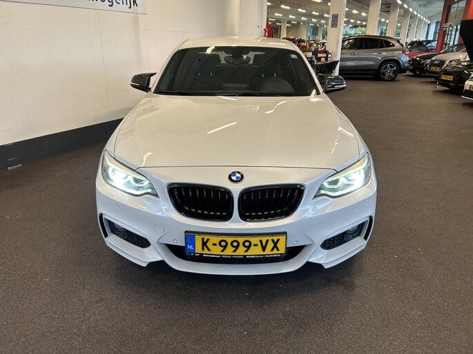 Coupé 228i High Executive M-pakket/Compleet M-uitgevoerd/Parelmoer kleur/Sportstoelen alcantara/Parkeersensoren rondom/Keyless/Privacy glass/Navigatie/Cruise control/Climate control/Flippers/Stoel en spiegel verwarming/Zwarte hemel/18" M-velgen/Vol opties!