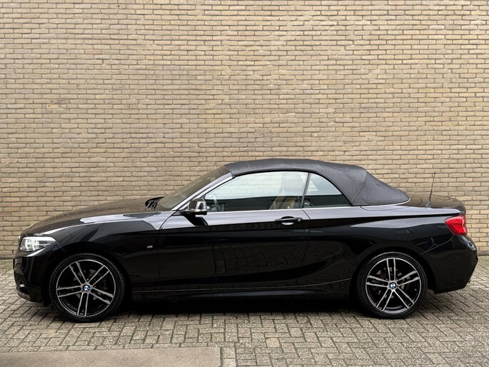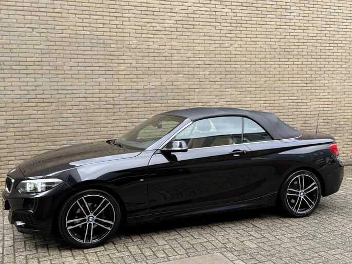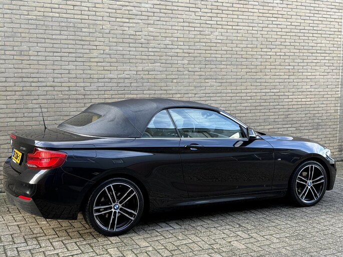 Cabrio 218i High Executive M-pakket | Leder | Camera | Navigatie | Apple CarPlay / Android Auto | 18 inch LMV | Sportstoelen | Sportstuur | LED | DAB | Windscherm | Stoelverwarming | Volledig onderhouden | Origineel NL-auto met NAP!