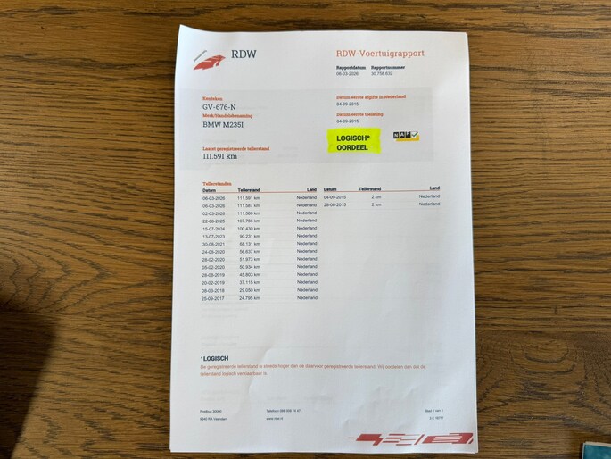 Kilometerstand gecontroleerd