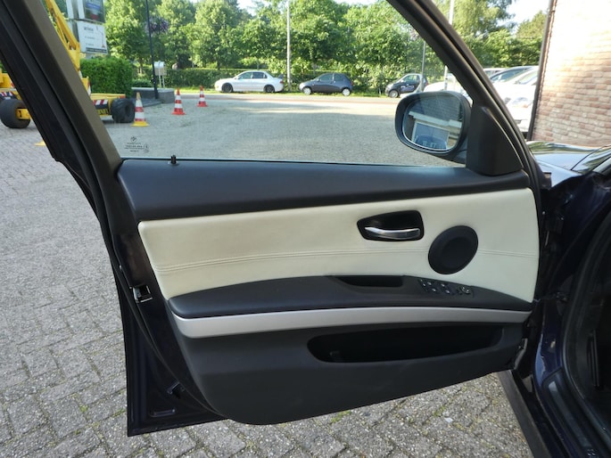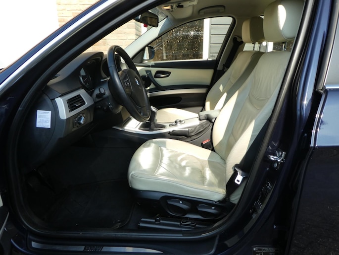 Een representatieve zakenauto, dat is deze BMW 3-serie Touring. Maar bovendien is hij veilig en comfortabel. Deze auto is uitgerust met een zescilinder motor en een handgeschakelde zesversnellingsbak. De lederen bekleding geeft het interieur een hoogwaardige uitstraling. Met de krachtige xenonverlichting rijdt u ontspannen in het donker. Verder is de BMW uitgerust met: 16 inch lichtmetalen velgen, actieve hoofdsteunen, metallic lak, verwarmde ruitensproeiers, elektrisch bedienbare ramen voor en elektrisch inklapbare buitenspiegels.