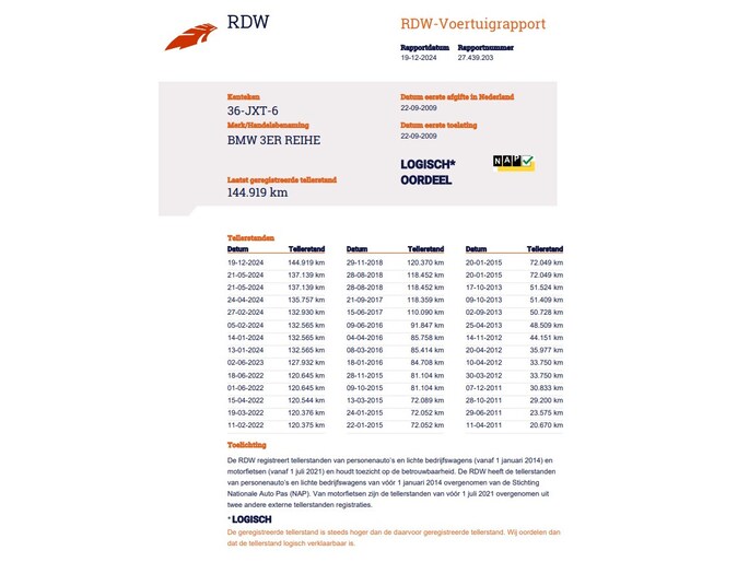 Kilometerstand gecontroleerd