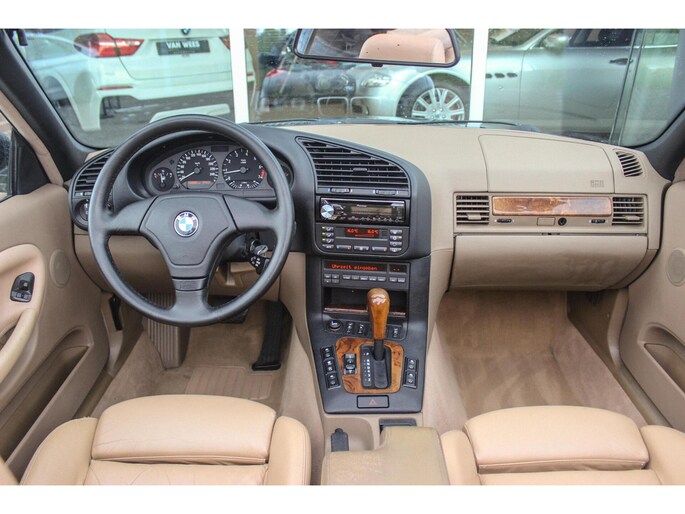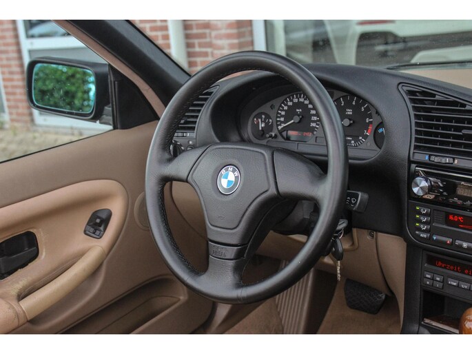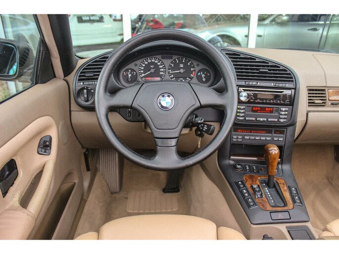 - Model: 3-serie Cabrio 320i E36 Executive | NL auto | 6 cilinder | Automaat | 17 inch | Leer | Sportstoelen | Sportstuur | Climate-control | Cruise control | Elektr kap |