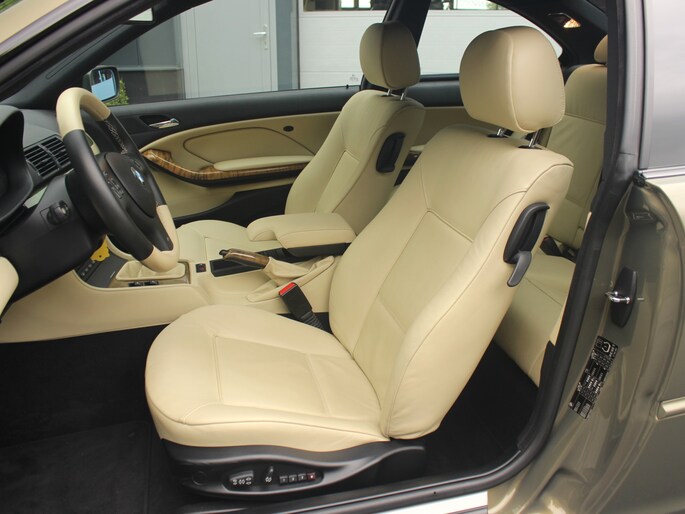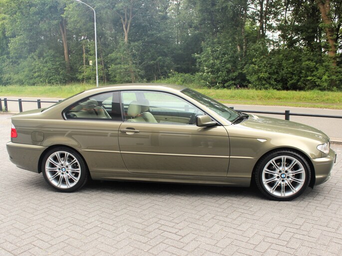 KIJKT U OP ONZE WEBSITE VOOR EEN UITGEBREIDE FOTOREPORTAGE! In concoursstaat verkerende BMW E46 325ci Individual. Het betreft een 325ci Individual in de waanzinnige kleur Messing Metallic in combinatie met de vollederuitrusting Walknappa Ecru en interieurlijsten van Muschelahorn Olive. De 18 inch styling M-135 lichtmetalen velgen zijn ook in nieuwstaat. De auto is afkomstig van de tweede eigenaar, dealer onderhouden en volledig gedocumenteerd. Van de aankooprekening uit 2004 tot aan alle rekeningen van onderhoud. Er is altijd extreem goed op de auto gepast en de auto stond altijd garage gestald, wat resulteert in een nieuwwaardige auto. Onder de motorkap vinden we de heerlijke M54 2,5 zes-in-lijn motor met 192pk gekoppeld aan een handgeschakelde versnellingsbak. De auto prachtig geconfigureerd en is dit een uitvoering waar je nooit een tweede van tegen zult komen. Bovendien heeft de auto de fabriek verlaten met het heerlijk optiepakket. We lichten er een aantal uit. Xenon-verlichting Adaptief, Climate control, Cruise control, Park distance control, Regensensor, Multifunctioneel M-sportstuur, High-gloss shadowline, Hemelbekleding antraciet, 18 inch styling M-135 lichtmetalen velgen (breedset), Stoelverwarming, Elektrisch verstelbaar voorstoelen met memory, Automatisch dimmende binnenspiegel, Radio BMW Business CD, Comfort pakket, Lichtpakket, Spiegelpakket, Individual instaplijsten en een elektrisch te bedienen zonnerollo voor de achterruit. Samengevat een fraaie, complete en extreem zeldzame 3-serie coupé in Jahreswagenzustand. Kom gerust langs voor deze zeer speciale BMW E46 325Ci!