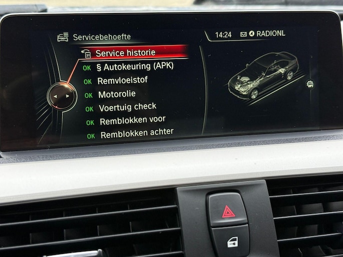 De speciale app verbindt met Connected Services, die de status van vitale functies bijhoudt en waarschuwt als u bijvoorbeeld moet tanken, de bandenspanning moet controleren of olie moet bijvullen. Tijdens de rit bedient u het audio-installatiesysteem en het navigatiesysteem met harde schijf met de knoppen op het stuur of met uw stem. Of het buiten nu warm is of koud, dankzij electronic climate control is het binnen altijd behaaglijk. Parkeerplekken worden er niet ruimer op. Maar met de aanwezige parkeersensoren krijgt u deze BMW 3-serie zonder problemen op z'n plaats. De auto neemt u werk uit handen doordat hij zelf veel in de gaten houdt. Een regensensor en een automatisch inschakelbare verlichting nemen waar wanneer de ruitenwissers en het licht aan moeten. De BMW is standaard voorzien van: lederen sportstuur, cruise control, isofix-aansluiting, centrale deurvergrendeling met afstandsbediening en boordcomputer.