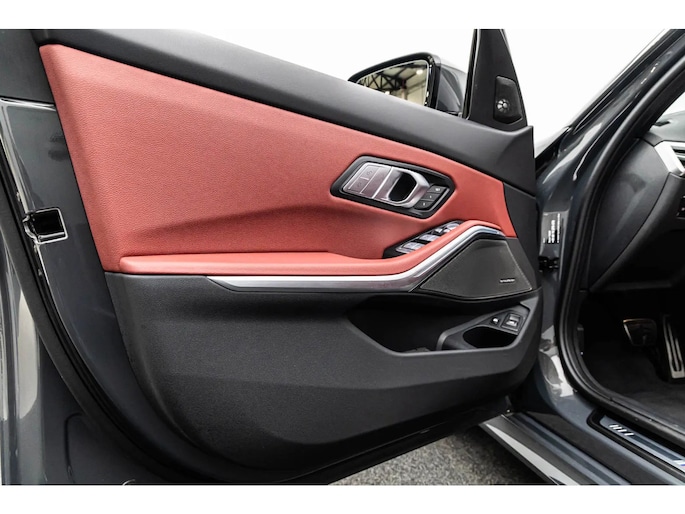 UNIEK! Schitterend samengestelde, modeljaar 2025, BMW 3 serie Touring M Sport in Individual Dravitgrau met een Tacorarot lederen interieur en bijna alle mogelijke opties! De 330 is voorzien van de zuinige 2.0 liter BMW benzinemotor en een elektromotor, deze combinatie is goed voor maar liefst 293pk en toch lage gebruikslasten! Deze auto is o.a. voorzien van het M-Sportpakket Pro (M-Sport sportinterieur met M striping in de gordels, M Sport stuurwiel, M Aerodynamica, zwarte hemelbekleding, M-Sport adaptief sportonderstel, M-Sport remmen met rode remklauwen, schitterende 19" M-Sport lichtmetalen velgen in Jet Black, M Performance grill ), BMW Hoogglans Shadowline, Carbon Fibre interieur afwerking, sfeerverlichting, elektrische stoelverstelling met geheugen, lendesteun, donkere adaptieve LED koplampen en LED achterlichten, grootlichtassistent, Live Cockpit Pro, navigatie Professional met bluetooth, Harman/Kardon Surround systeem, DAB en multimedia, draadloze telefoonlader, Head-Up display, elektrisch panoramadak, PDC voor en achter met 360 graden camera en parkassist, dodehoekdetector, lane assist, climate control, adaptieve cruise control, stoelverwarming, stuurwielverwarming, BMW Iconic sounds, keyless entry, alarmsysteem, enz. enz. NIEUWPRIJS RUIM € 86.000,-! De prijs voor deze sportieve 330e hybride BMW is rijklaar.