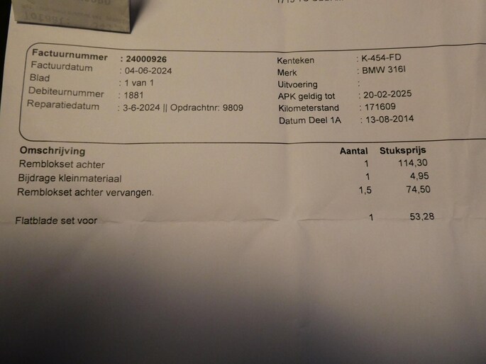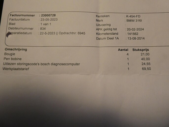 - Onderhoudshistorie aanw.