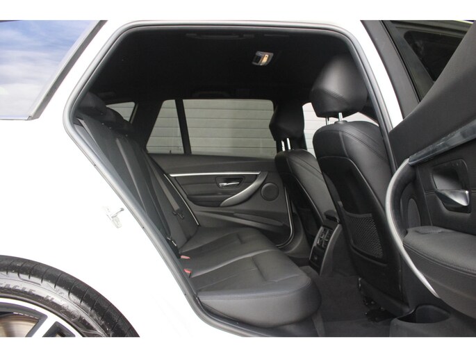 Het interieur van deze F31 is zeer stoer met de Dakota schwarz lederen bekleding, het M sportstuurwiel en de antraciet dakhemel.