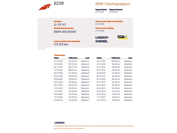 Kilometerstand gecontroleerd
