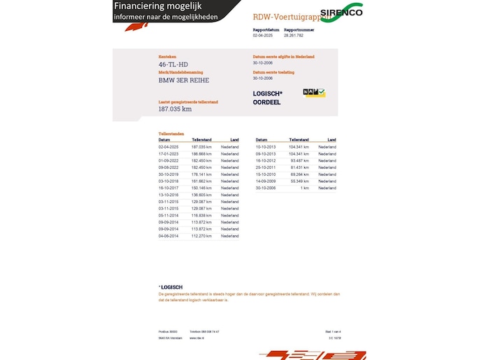 Kilometerstand gecontroleerd