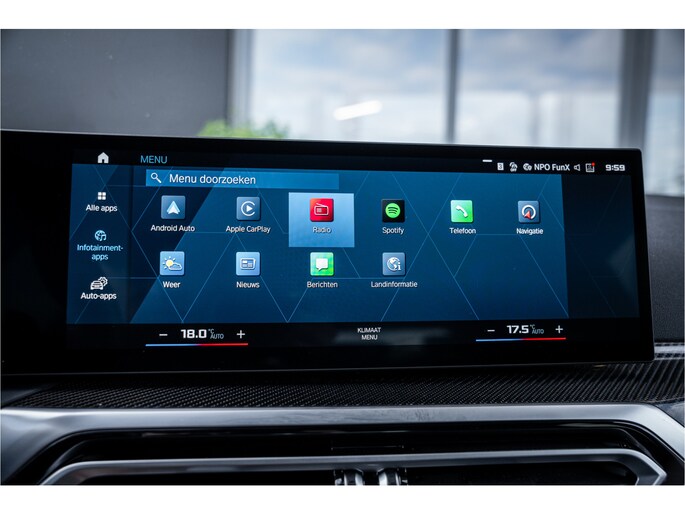 Het digitale dashboard stelt u in staat uw cockpitinterface te personaliseren. Met de hulp van vier camera's, biedt de 360 graden camera op deze auto een panoramisch zicht, wat bijzonder nuttig is bij het parkeren en manoeuvreren. Met adaptive cruise control houdt de auto zelfstandig afstand tot uw voorligger. Een veiligheidsverhogende optie waarmee u comfortabel onderweg bent. Dankzij Connected Services heeft u overal en altijd uw dashboard op zak. Alle belangrijke functies zijn te checken via de app. Een belangrijke veiligheidsvoorziening is de bediening van het audio-installatiesysteem en het navigatiesysteem, via knoppen op het stuur en middels spraakbediening. DAB-ontvangst geeft daarbij een kraakheldere ontvangst. De BMW is standaard voorzien van: achteropkomend verkeer waarschuwing, kruisend verkeer detectie, electronic climate control, sportstuur met schakelpaddels, draadloos opladen en regensensor.