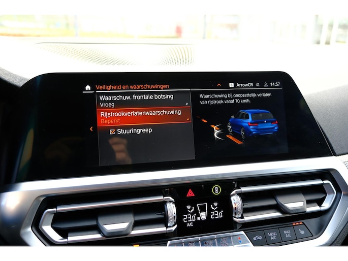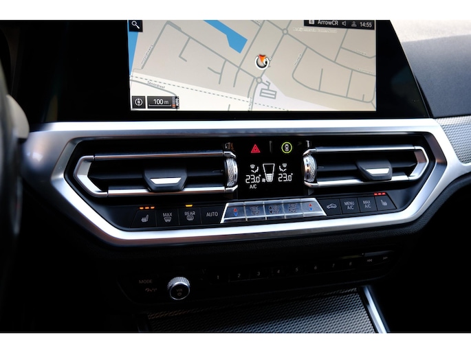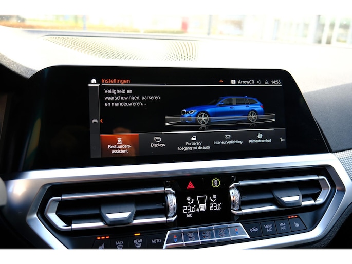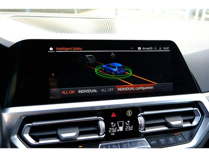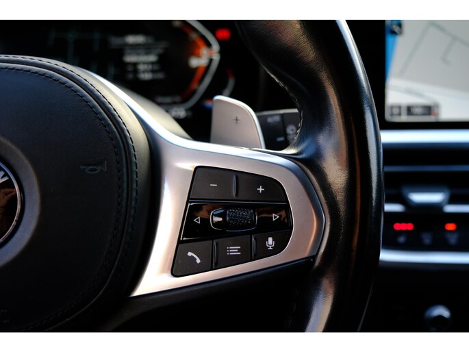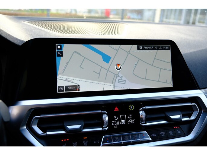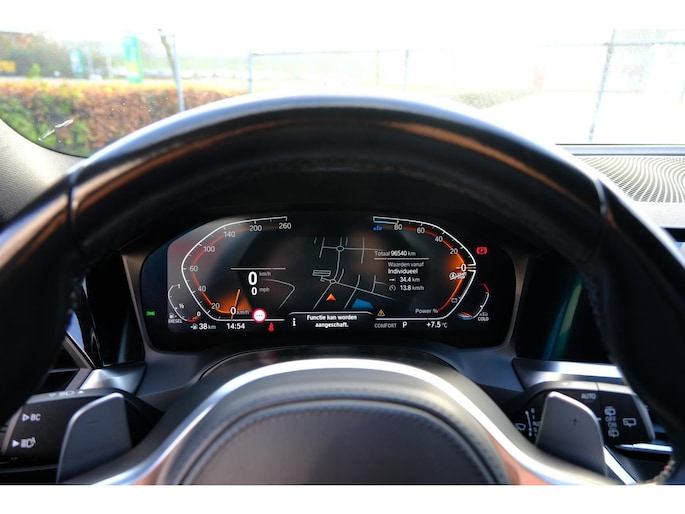Het digitale dashboard in deze auto maakt personalisatie van uw cockpitinterface mogelijk. Bij het inparkeren hoeft u het laatste stukje niet te gokken: de achteruitrijcamera kijkt voor u uit. Adaptive cruise control is veilig en comfortabel. De snelheidsregelaar houdt automatisch afstand tot het voertuig dat voor u rijdt. Ingericht op Connected Services, voor een nog veiligere en comfortabelere rit. De bediening van het audio-installatiesysteem en het navigatiesysteem met harde schijf gebeurt met knoppen op het stuur en als u wilt zelfs met uw stem. De audio is overigens voorzien van DAB-radio voor een altijd heldere ontvangst. De uitrusting van deze BMW is met achteropkomend verkeer waarschuwing, electronic climate control, draadloos opladen, regensensor, sportstuurwiel en automatisch dimmende binnenspiegel behoorlijk compleet.