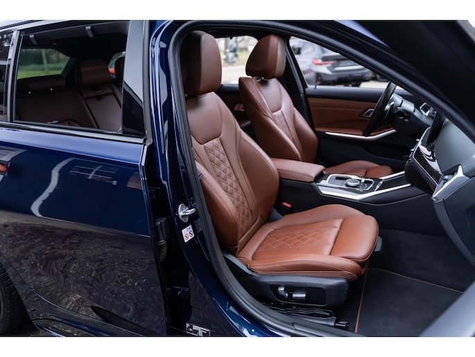 BMW 330E M Perf in de keur Tanzanite Blauw! Voorzien van Panorama dak Head Up H&K Elec stoelen met memory & INDIVIDUAL INTERIEUR