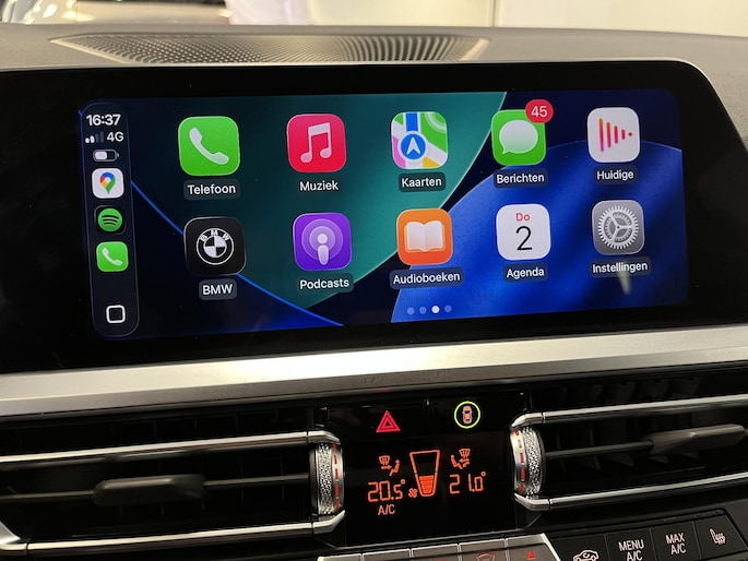 Tijdens de rit wordt u als bestuurder ondersteund door verschillende systemen die de weg en uw omgeving in de gaten houden. In het instrumentarium kunt u bovendien de verkeersborden zien die u onderweg tegenkomt. Zo helpt deze BMW u om veiliger te rijden. Deze BMW 3-serie is ook behulpzaam als het gaat om een rechte koers. Het Lane-keeping systeem signaleert en corrigeert als u onbedoeld de rijstrooklijnen dreigt te overschrijden. Mindert een voorligger onverwachts te veel vaart, dan komt de forward collision warning in actie en waarschuwt meteen. In deze BMW vinden we verder een dodehoekdetectie, hill hold functie, brake assist, vermoeidheidsherkenning en bandenspanningcontrolesysteem.