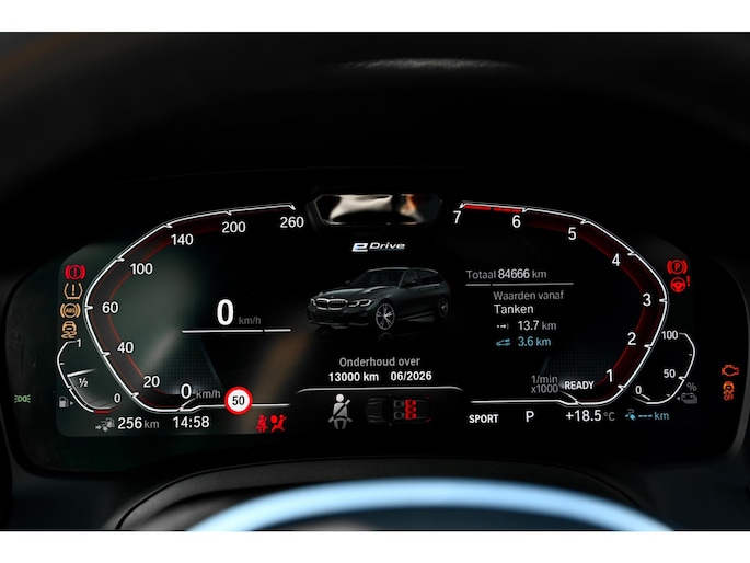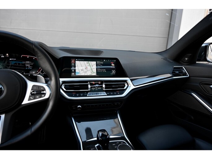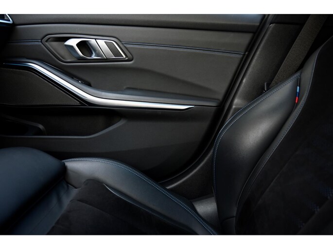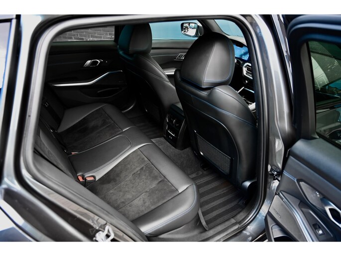 De ingetogen en tijdloze Mineralgrau metallic lak, gecombineerd met de Shadow Line Hoogglans en het fabrieksaf M Sportpakket, geeft deze 330e xDrive een sportieve en tegelijk elegante uitstraling. De originele 19-inch M Lichtmetalen velgen (Style 791M, Bicolor) versterken het dynamische karakter. In het interieur gaat die lijn naadloos verder met sportstoelen in Alcantara/Sensatec combinatie, een sportstuur en Aluminium Tetragon interieurinleg, die samen zorgen voor een verfijnde, premium sfeer met een duidelijke M-signatuur.