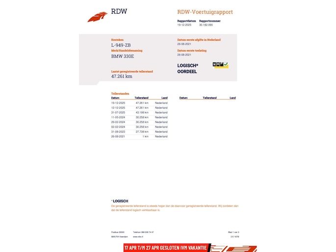 Kilometerstand gecontroleerd