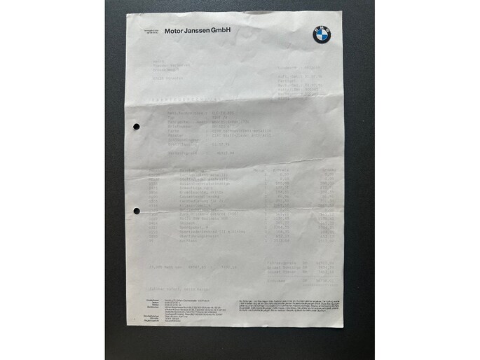 At the time, the BMW was ordered with a number of desirable options, including the sought-after M Sport Package. For a 320i Sedan, this was by no means a common configuration — which makes this example particularly distinctive. The base price at the time was DM 48,200, and with the selected options – listed below – the total price amounted to an impressive DM 56,750.01.