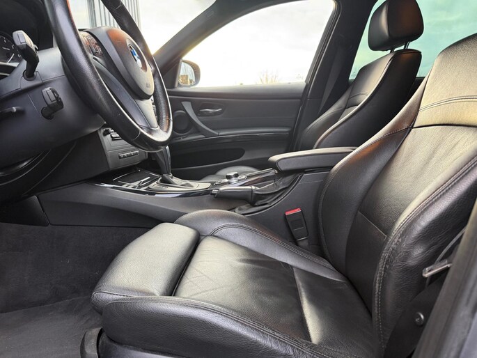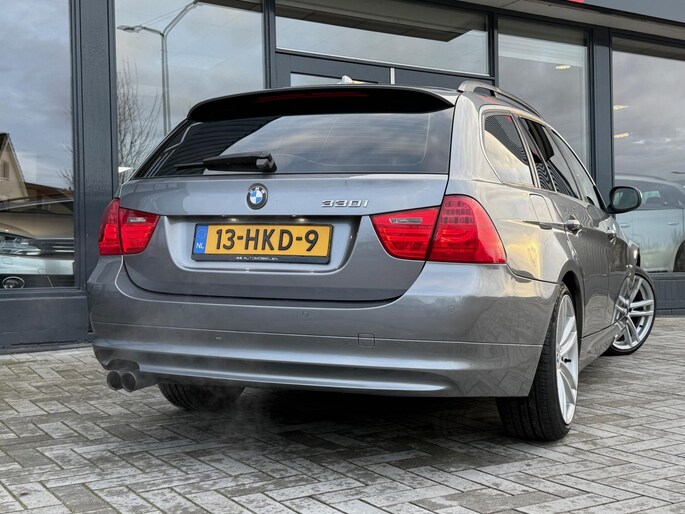 Dit is niet zomaar een BMW 3-serie Touring. De hoge prestaties van de motor, het strak afgestelde onderstel en de uitgekiende verhoudingen van de transmissie staan garant voor bergen rijplezier. De aandrijving van deze BMW wordt verzorgd door een zescilinder motor en een automatische transmissie. Deze BMW is voorzien van een mooie en comfortabele lederen bekleding. Voorin is het 's winters genieten met de verwarmbare voorstoelen voor zowel bestuurder als bijrijder. Opvallend zijn de stoere sportstoelen, die zorgen voor een onwrikbare zit in de scherpe bochten. Met de krachtige xenonverlichting heeft u optimaal zicht in het donker. In deze auto profiteert u onder andere ook van: 18 inch lichtmetalen velgen, sportonderstel, verwarmde ruitensproeiers en snelheidsafhankelijke stuurbekrachtiging.