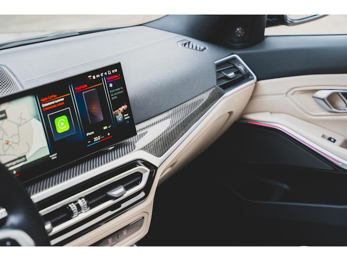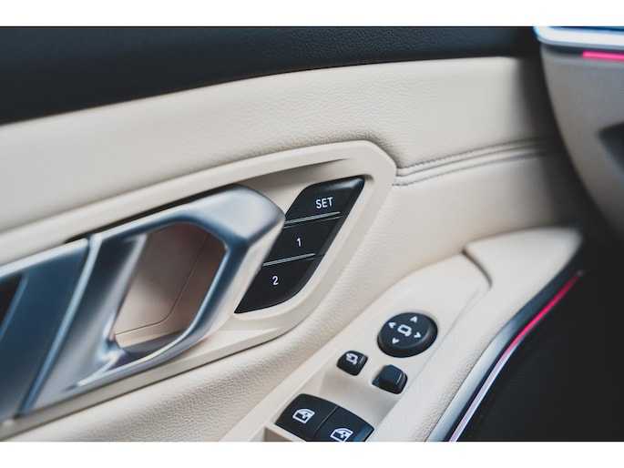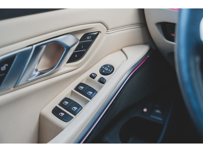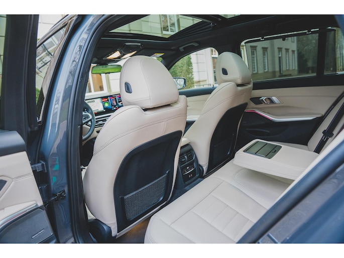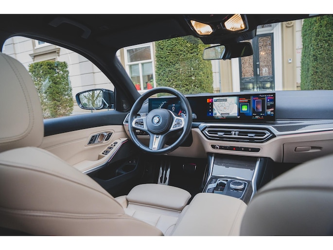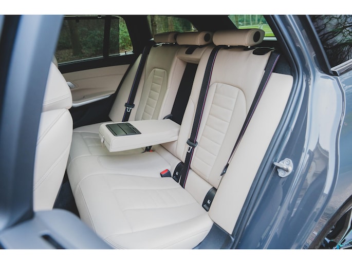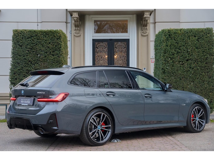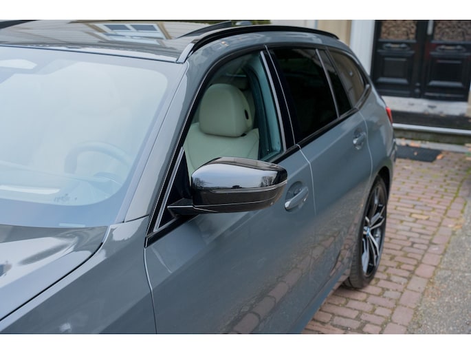Deze BMW 330e Touring High Executive is uitgevoerd in de beste kleur voor dit model, namelijk Individual Dravit Grau, dit combineert zeer fraai met de 19 inch lichtmetalen velgen. Om de looks af te maken is deze uiteraard voorzien van het M-Sport pakket. Ook is het ShadowLine pakket aangevinkt waardoor alle sierlijsten in het zwart zijn uitgevoerd inclusief extra getint en geluidswerend glas. Om de looks af te maken is deze ook uitgevoerd met het M-Sport Pro pakket waardoor deze is voorzien van de rode remzadels. Om de rijbeleving te verbeteren is deze ook nog eens voorzien van het adaptieve M-Sport onderstel, oftewel, adaptieve dempers, dit is een extra van maar liefst €1281,-