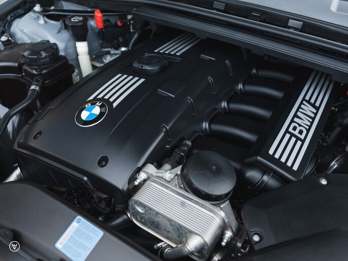 Dat over de conditie van de velgen gaat overigens ook op voor de staat van de rest van de auto. Waar je ook kijkt, wat je ook voelt of aanraakt: zelfs met de hoge verwachtingen die je hebt van een auto met zo’n lage kilometerstand weet deze 325i nog positief te verrassen. Veelzeggend is in dat kader dat zoals uit het voertuigdossier blijkt, alle injectoren reeds zijn vernieuwd (kosten: 4000,=) en het onderhoud ook in bezit van de laatste eigenaar nog bij de dealer gedaan werd.